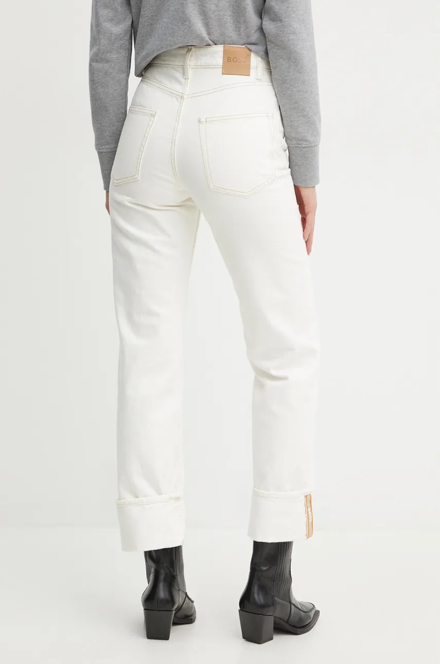 Jeansi din colectia Boss Orange cu fason straight cu talia inalta. Model confectionat din denim din material rigid, care păstrează forma. Bumbac, material confortabil.