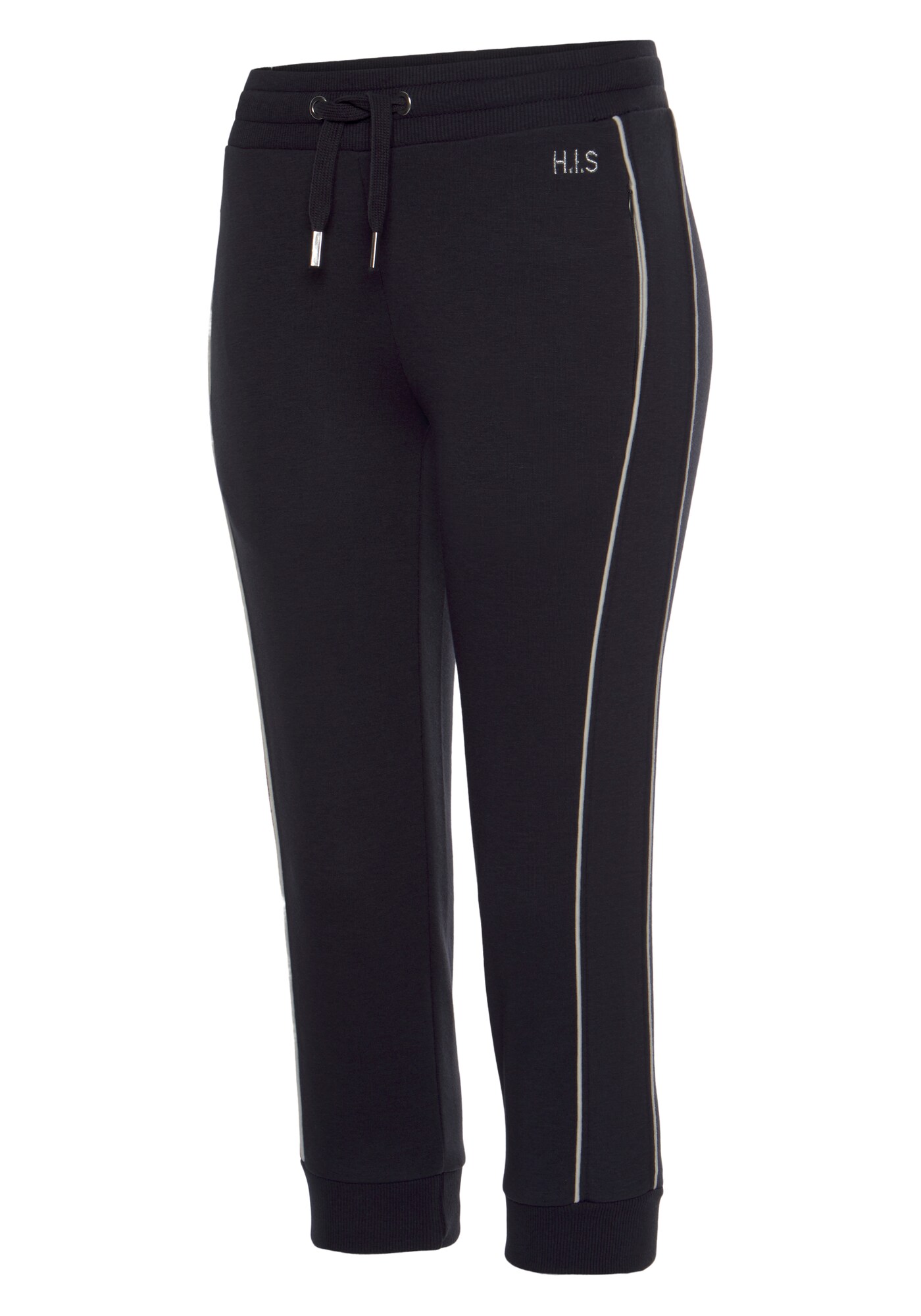 Design: Betelie cu șiret, Tiv/ betelie elastică, Buzunare laterale deschise; Material: Material sweat; Imprimeu: Monocrom; Detalii: Broderie, Dungi laterale; Detalii: Logo brodat, Material moale; Lungimea: Lungime 3/4; Tipul croiului: Slimfit; Tipul taliei: Mid waist