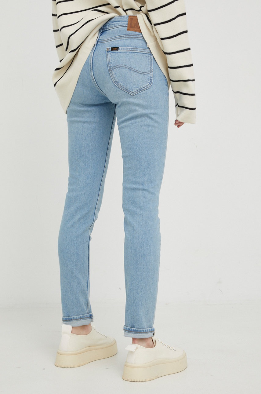 Jeansi din colectia Lee cu fason slim cu talia joasa. Model confectionat din denim ceruit.