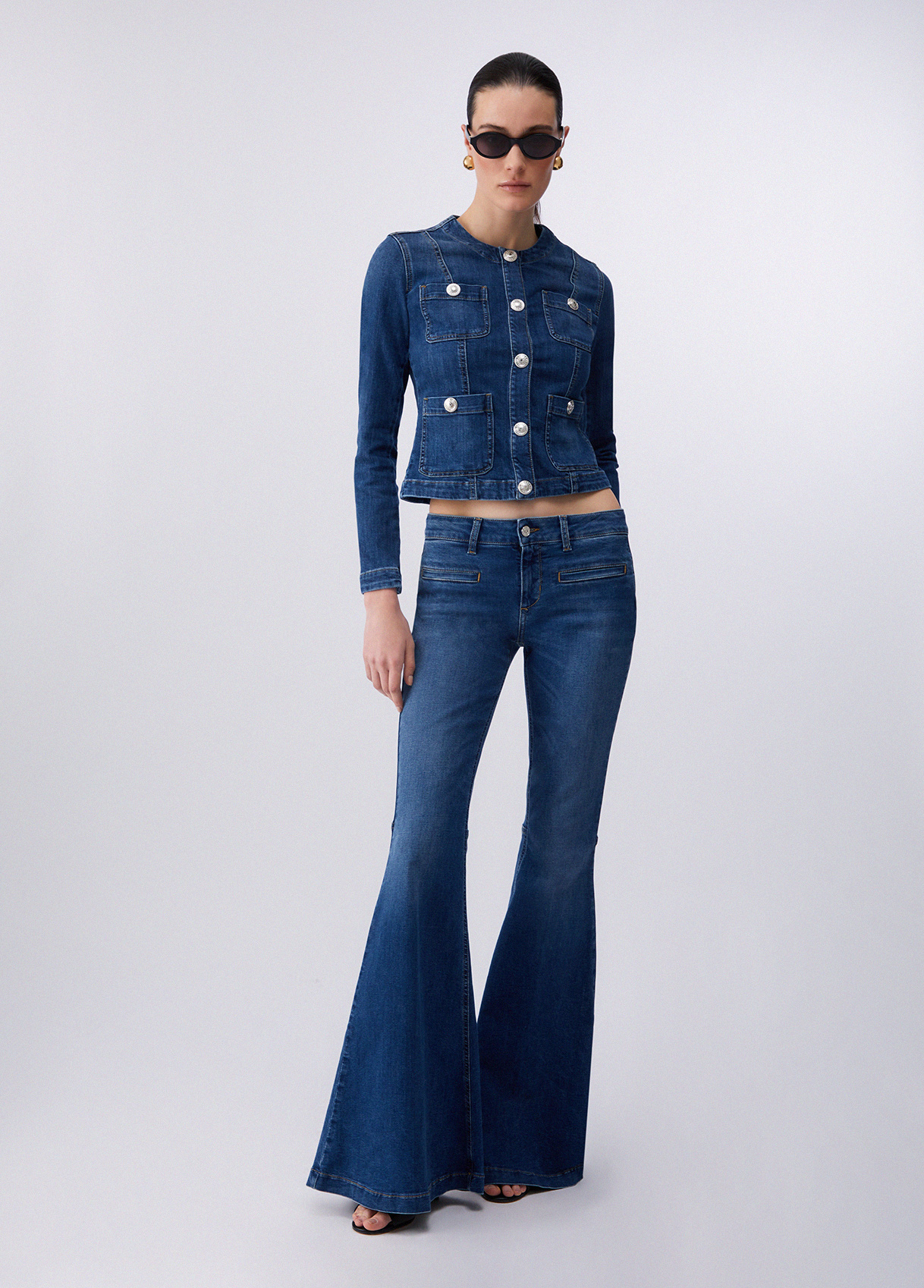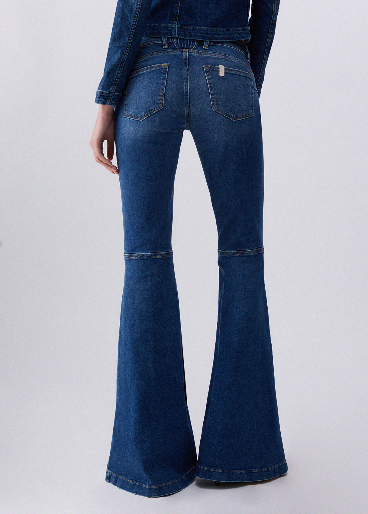 Part of the Liu Jo Better Denim capsule collection, these super flared, low-rise jeans are made with innovative processes that reduce the use of chemicals and allow for significant water and energy savings. From the leather label to the natural aluminum buttons, right down to the certified paper tag and recycled polybag. Stretch denim jeans Bottom up cuts elegantly redefine curves, creating harmony and support without sacrificing comfort Stone wash with whiskers and scratches for a used effect Low-rise Five-pocket style Elastic insert at the back Leather rear label Super flared leg Zip closure and natural aluminum alloy button Leg length: 89 cm Lower leg width: 40 cm Liu Jo Better product