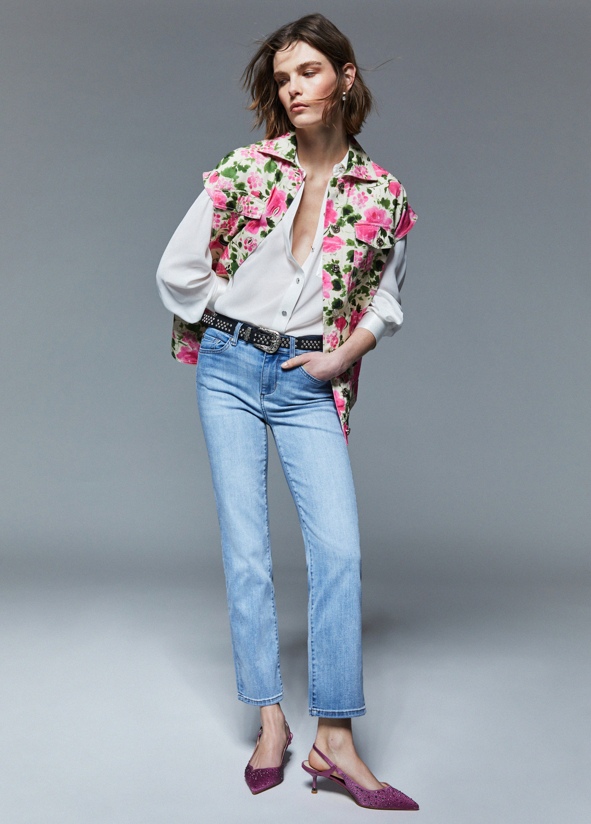 Part of the Liu Jo Better Denim Capsule Collection, these ankle-length straight-leg jeans are made with innovative processes that reduce the use of chemicals and allow for significant water and energy savings. From the leather label to the natural aluminum buttons, right down to the certified paper tag and recycled polybag. Stretch denim jeans Stone wash with smudges and tears Mid-rise Comfortable pockets Rhinestones on the rear pockets Straight leg Above-the-ankle length Leg length: 71 cm Hem width: 19.5 cm