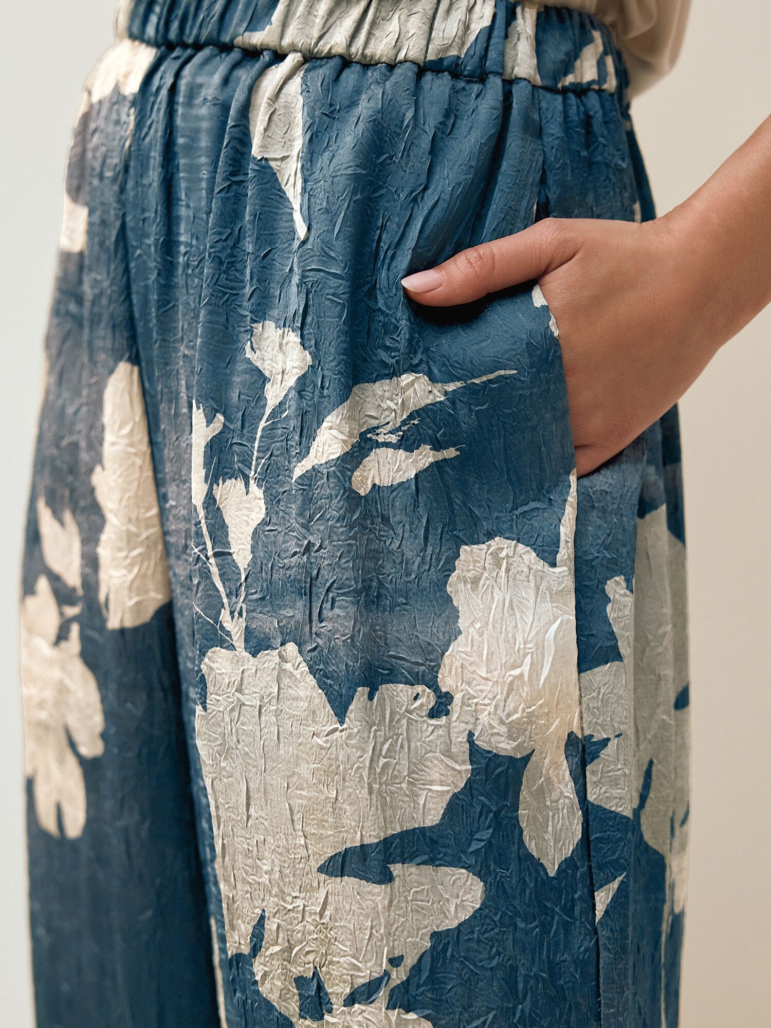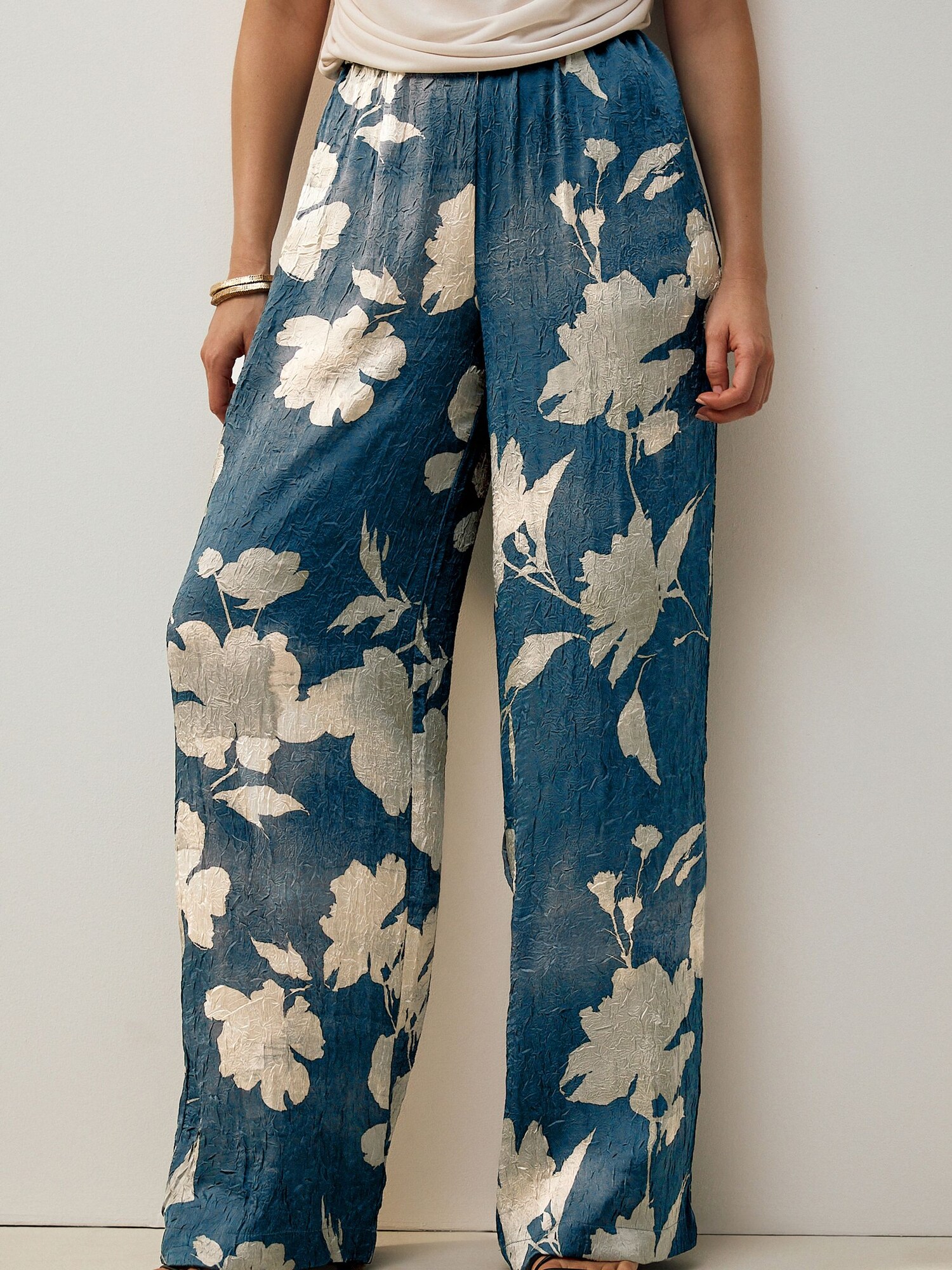 Design: Tiv/ betelie elastică; Material: Material reciclat; Imprimeu: Cu imprimeu floral; Detalii: Drapat; Detalii: Imprimat în totalitate; Lungimea: Lung/maxi; Tipul croiului: Wide leg; Tipul taliei: High waist