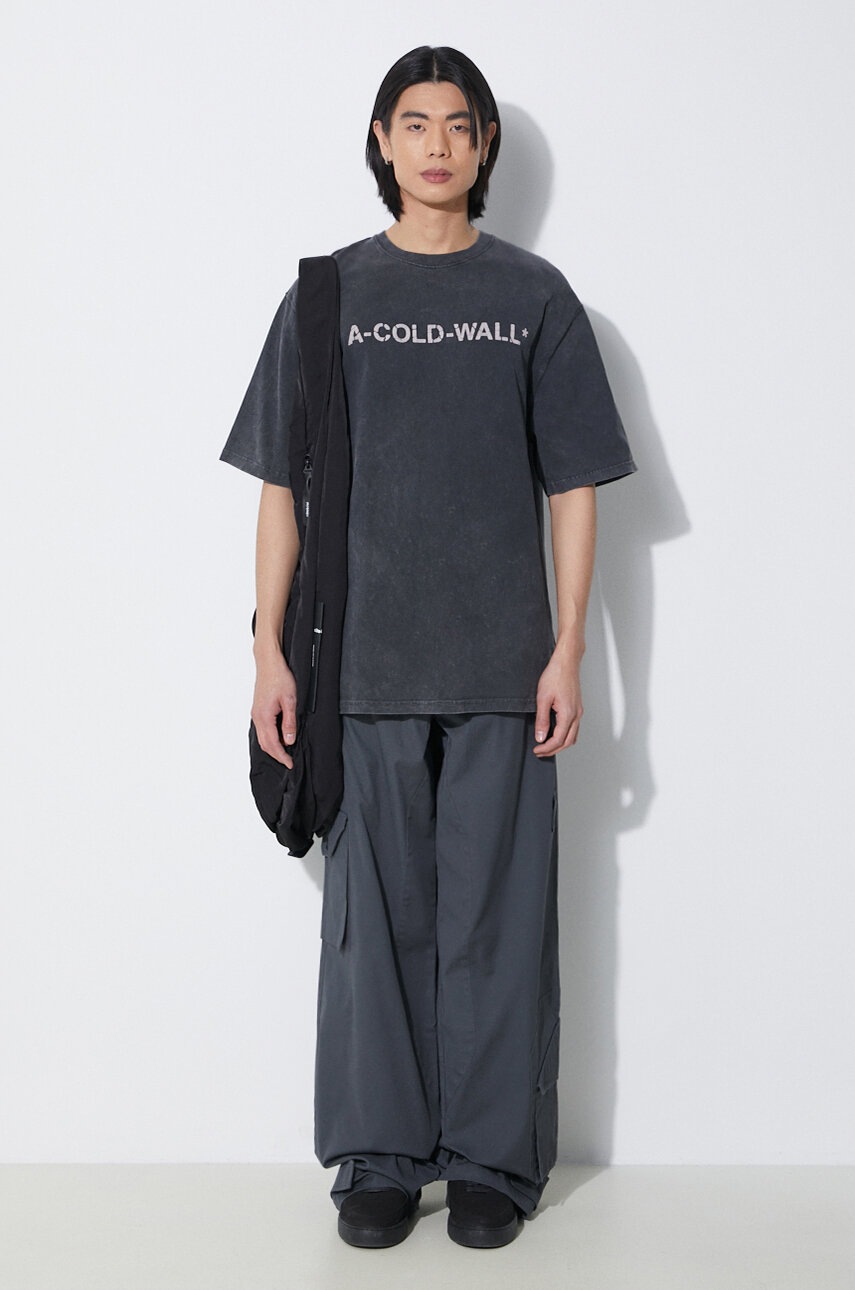 A-COLD-WALL* Pantaloni cargo Overlay pentru bărbați, gri, țesătură netedă, conținut ridicat de bumbac