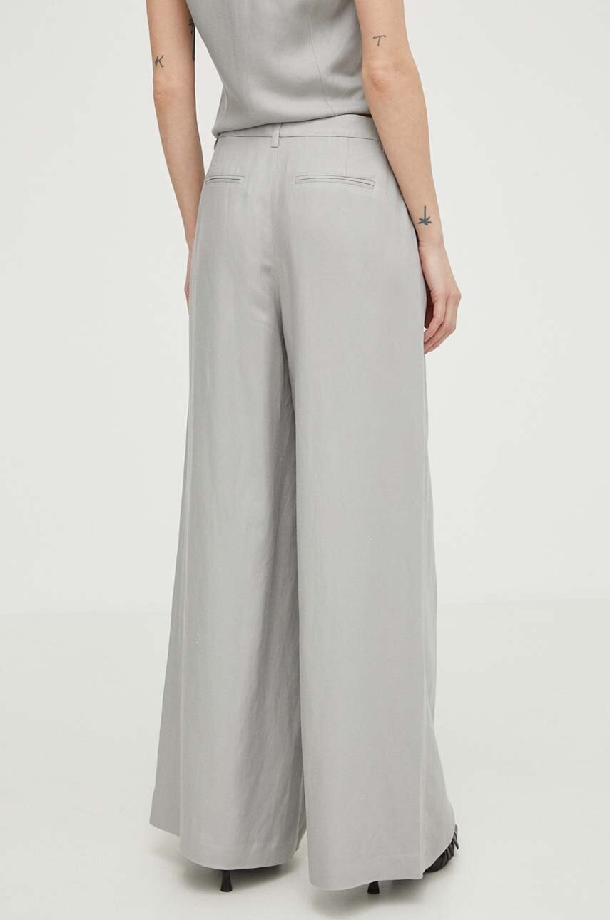 Îți propunem să descoperi confortul suprem și eleganța atemporală cu pantalonii din amestec de in Herskind, în nuanța sofisticată de gri. Acești pantaloni lat și cu talie înaltă sunt creați dintr-o țesătură netedă, care se simte splendid pe piele, oferindu-ți o libertate de mișcare fără egal. Materialul cu un conținut ridicat de vâscoză adaugă o notă de rafinament, făcându-i ideali atât pentru zilele lejere, cât și pentru momentele în care vrei să impresionezi. Îmbracă-te în stil și confort cu Herskind și transformă fiecare ieșire într-o declarație de eleganță! Nu rămâne pe margine, alege astăzi să te bucuri de acest must-have al garderobei tale!