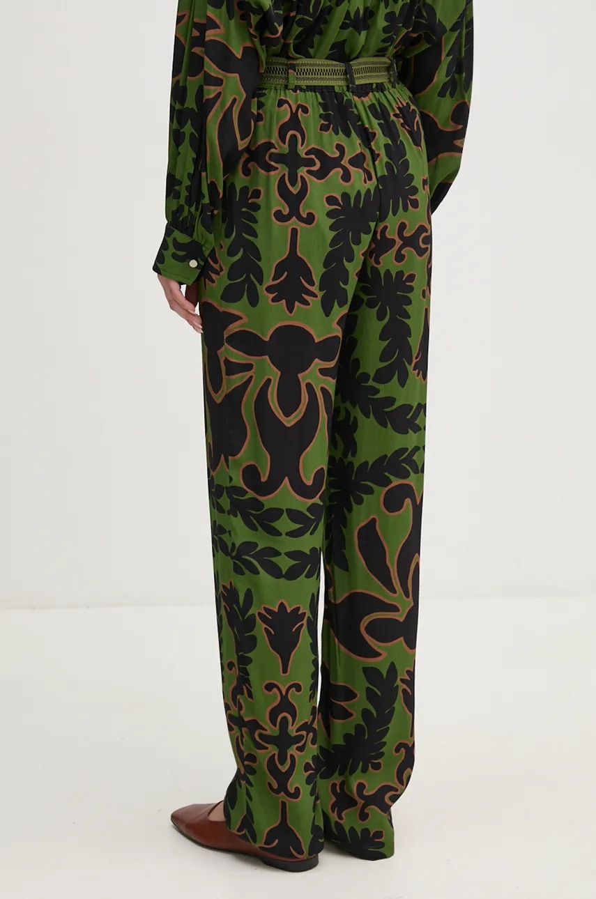 Pantaloni din colecția La Petite Française confecționat din tesatura ornamentata. Model confectionat din material aerisit, vascoza.