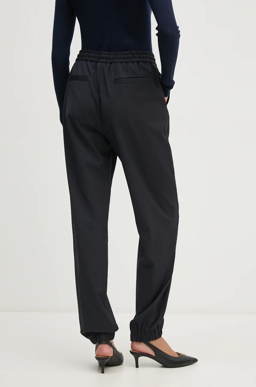 Îmbracă-te cu eleganță și confort în fiecare sezon cu pantalonii din lână Lacoste în culoarea albastru marin. Proiectați cu o talie înaltă, acești pantaloni nu doar că îți oferă un look rafinat, dar îți pun și în valoare silueta. Confecționați dintr-o țesătură netedă, strălucitoare, pantalonii păstrează căldura în zilele friguroase și asigură o senzație de răcoare în timpul verii datorită proprietăților termoregulatoare ale lânii. Transformă-ți garderoba cu această piesă versatilă care se adaptează perfect stilului tău de viață activ. Fă-ți un cadou pe măsură: alege astăzi pantalonii Lacoste și redefineste-ți stilul!