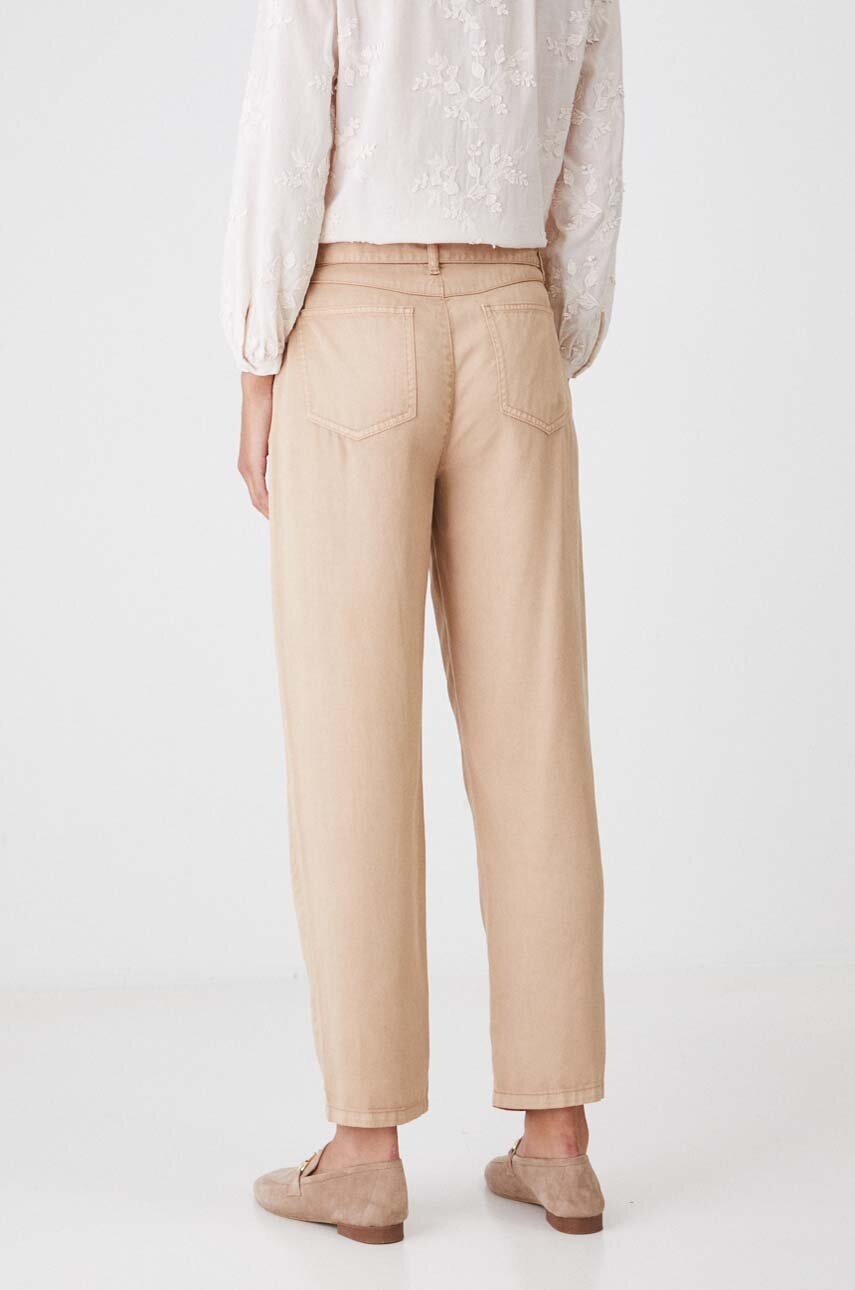 Medicine pantaloni femei, culoarea bej, fason chinos, medium waist