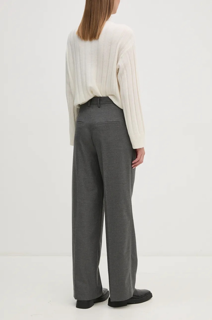 OUI pantaloni femei, culoarea gri, lat, high waist, 89782