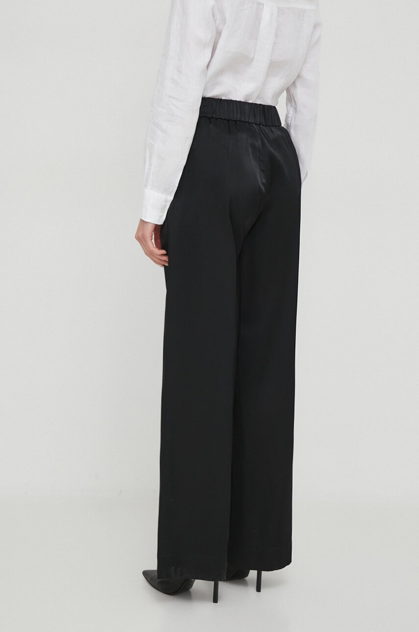 Sisley pantaloni femei, culoarea negru, lat, high waist