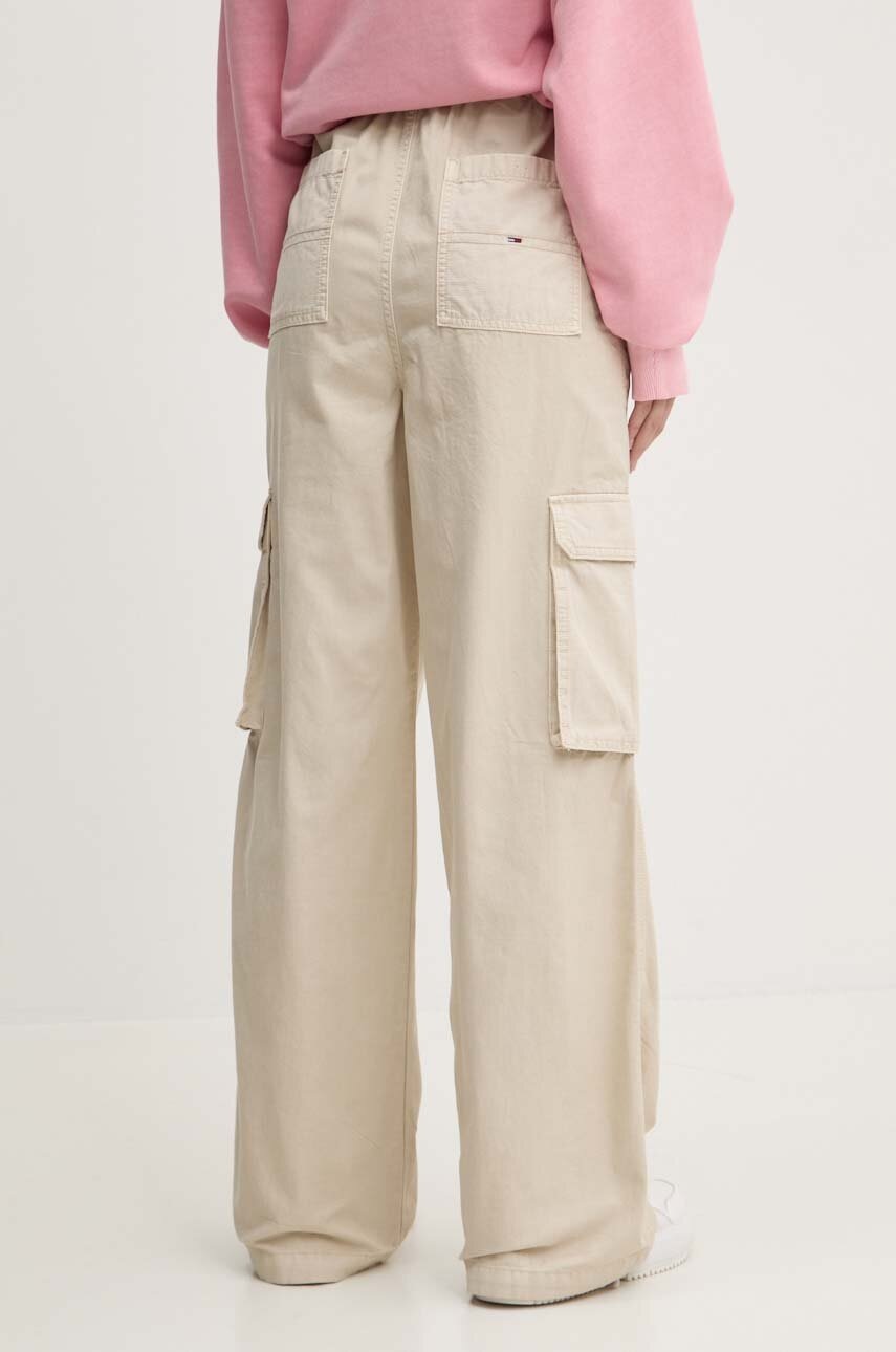 Tommy Jeans pantaloni de bumbac culoarea bej, lat, high waist, DW0DW18507