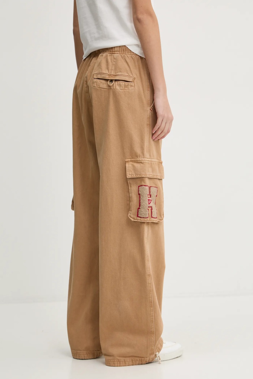Tommy Jeans pantaloni femei, culoarea maro, fason cargo, medium waist, DW0DW20531