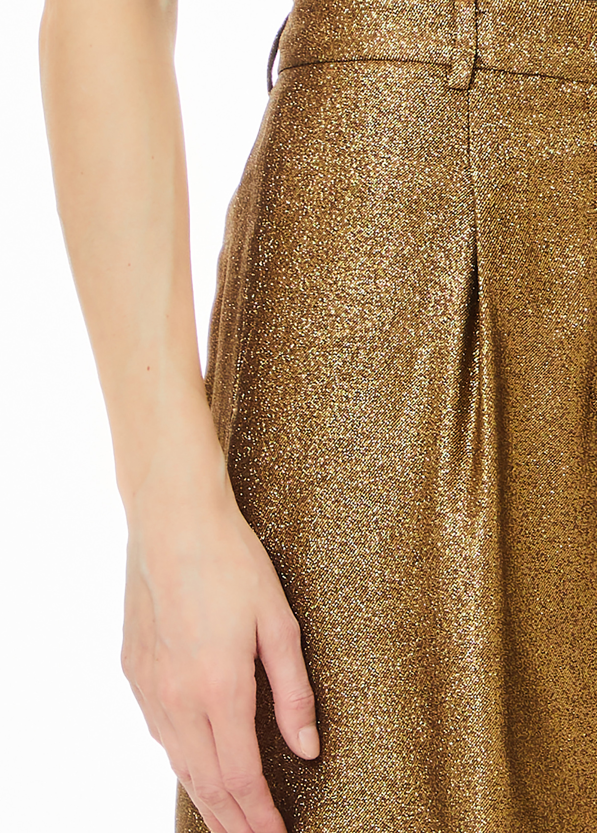 Viscose-blend culottes Lurex® inserts Darts and pressed crease Pockets on the sides Welt pocket on the back Metal logo label on the back Hidden zip closure