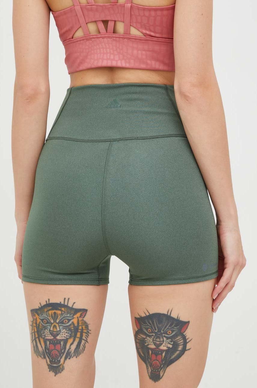 adidas Performance pantaloni scurți de yoga Studio Lux Fire femei, culoarea verde, neted, high waist