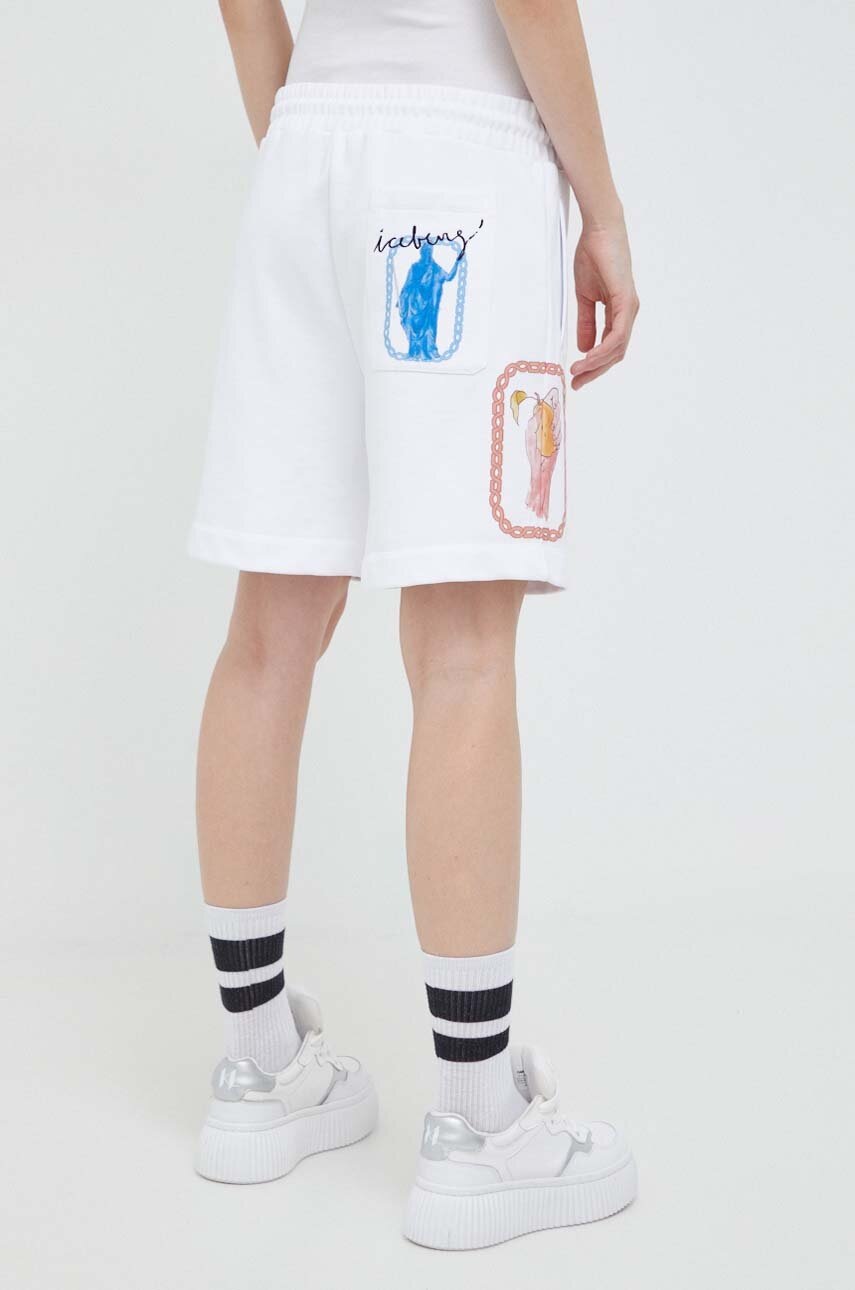 Iceberg pantaloni scurti din bumbac culoarea alb, cu imprimeu, high waist