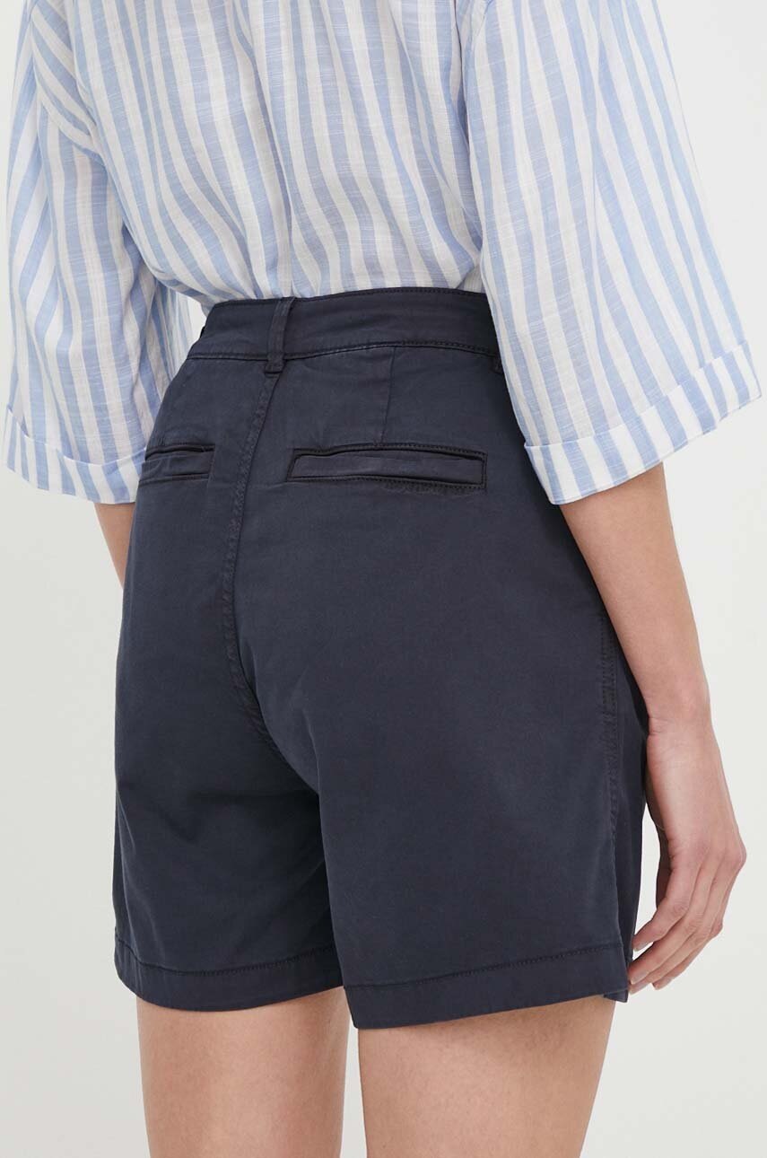Pepe Jeans pantaloni scurți femei, talie înaltă, albastru marin, țesătură netedă, bumbac