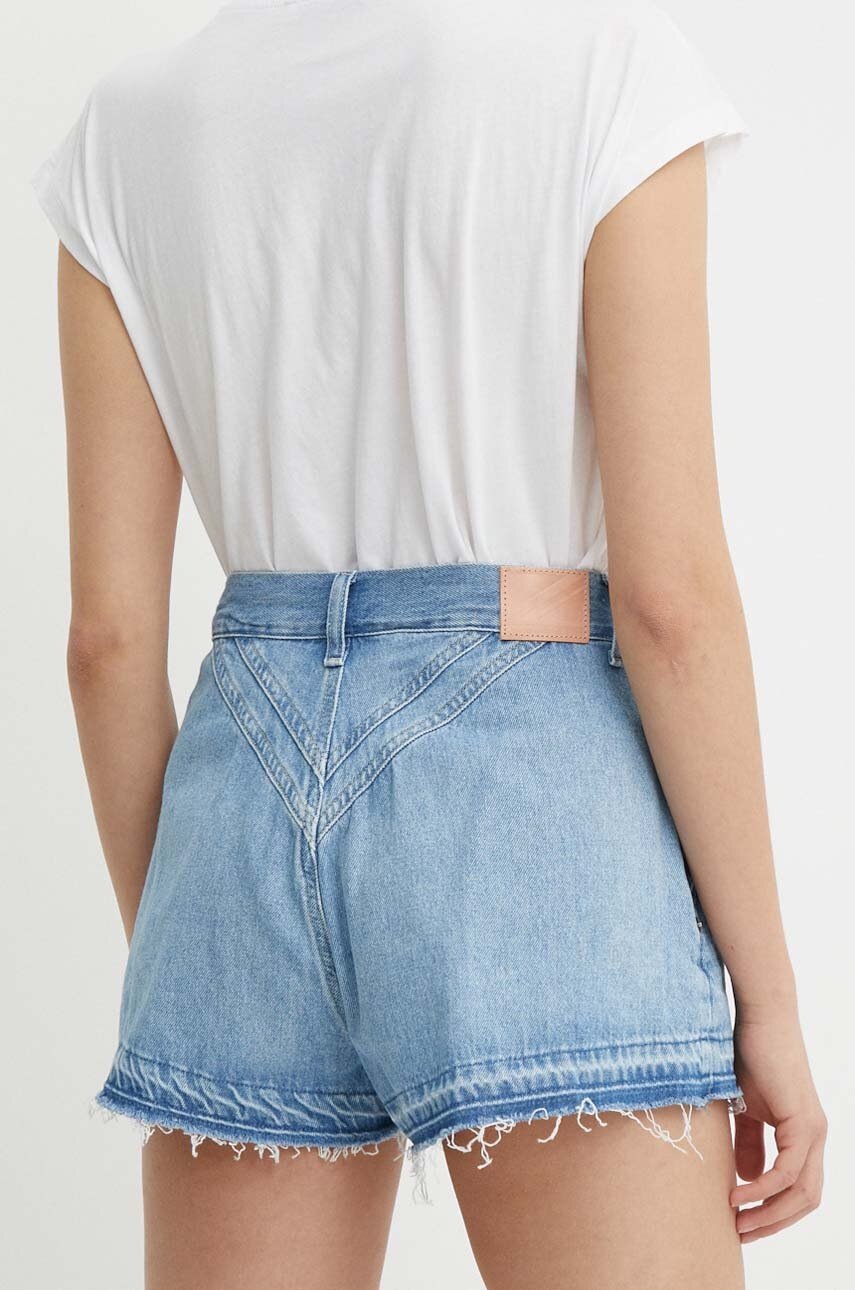 Pepe Jeans pantaloni scurti jeans A-LINE SHORT UHW SKY femei, neted, high waist, PL801114