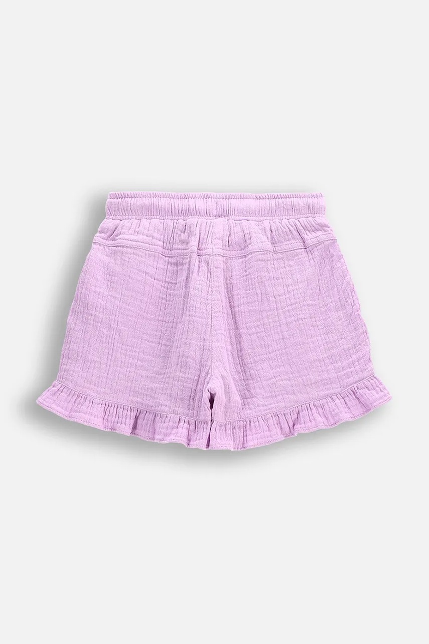 Coccodrillo pantaloni scurți din bumbac pentru copii culoarea violet, uni, talie reglabilă, INSIDE OCEAN GIRL KIDS