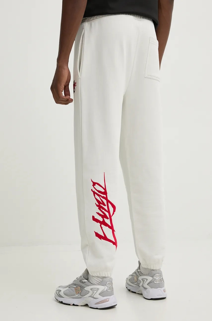 HUGO pantaloni de trening din bumbac culoarea bej, neted, 50521082