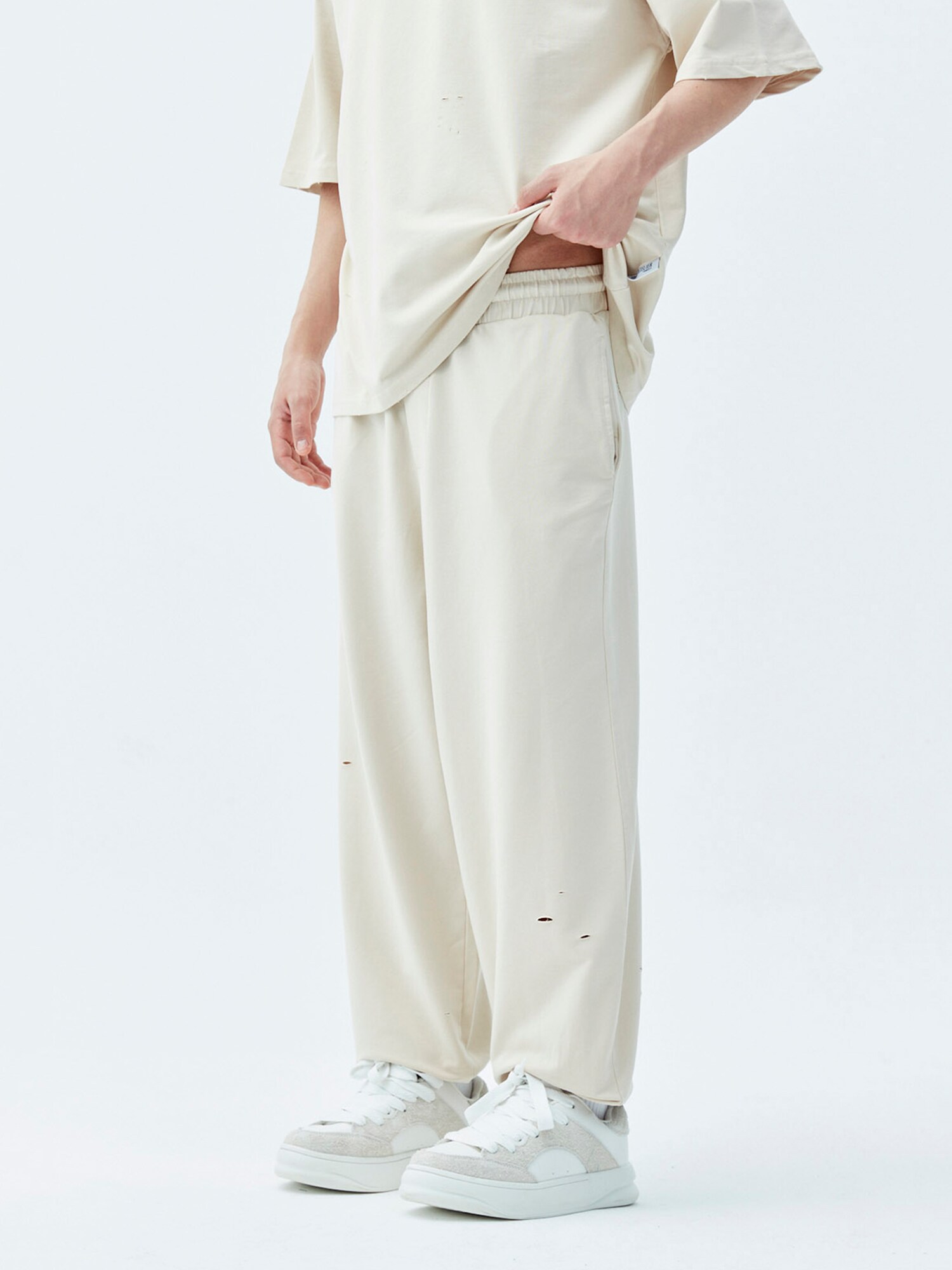 Design: Betelie cu șiret, Tiv/ betelie elastică, Buzunare laterale deschise, Croi lejer; Tip de închidere: Închidere cu șiret; Material: Material sweat; Imprimeu: Monocrom; Detalii: Material delicat, Material ușor, Material moale; Lungimea: Lung/maxi; Tipul croiului: Largi