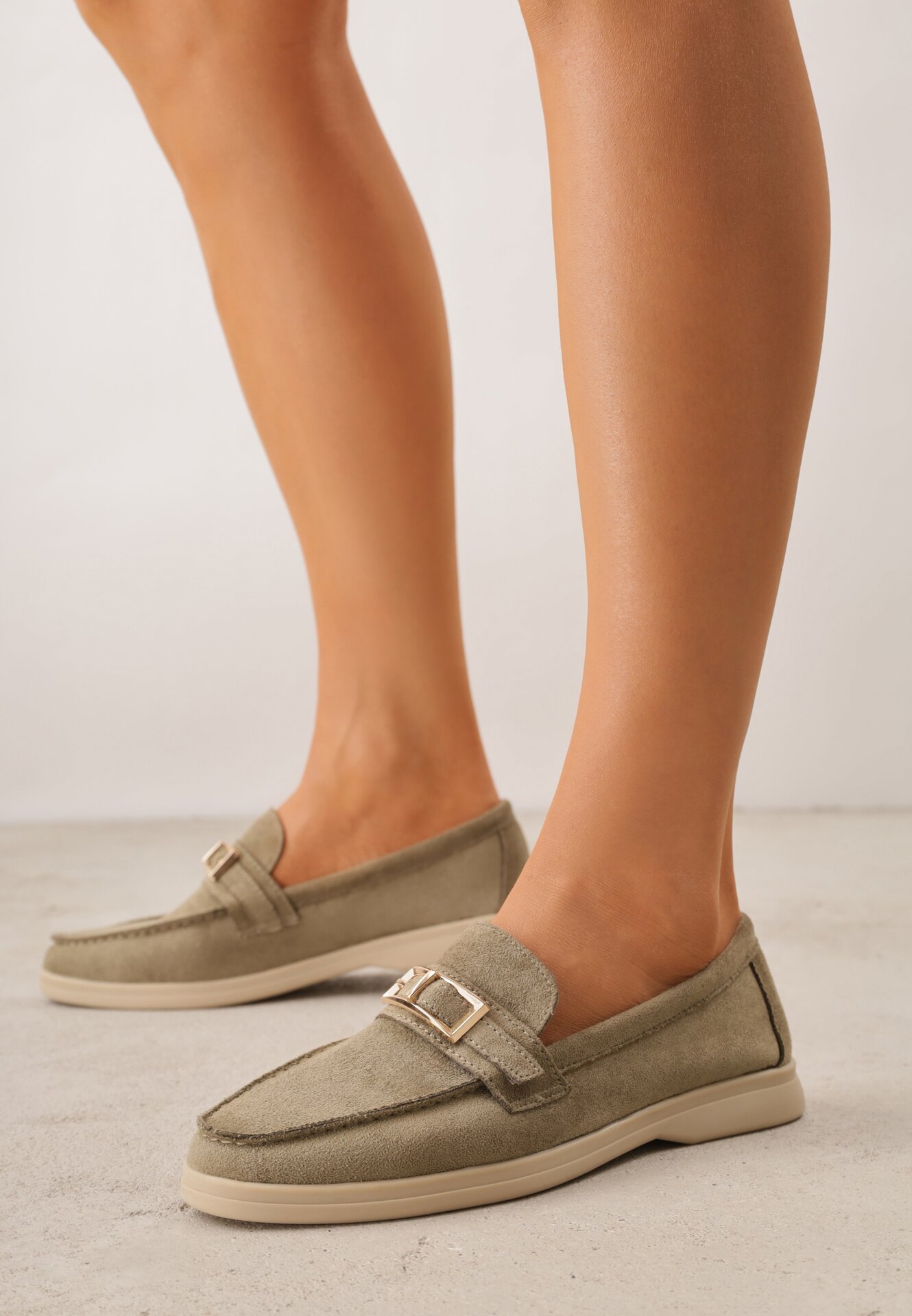 Mocasini Verzi cu Ornament Dreptunghiular Metalic Aeleorane
