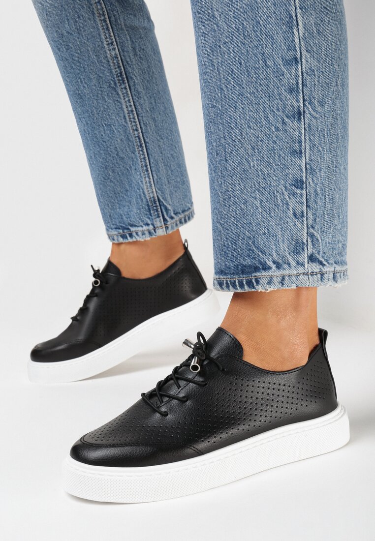 Adidași Negri cu Perforație și Șireturi Decorative Jarovita