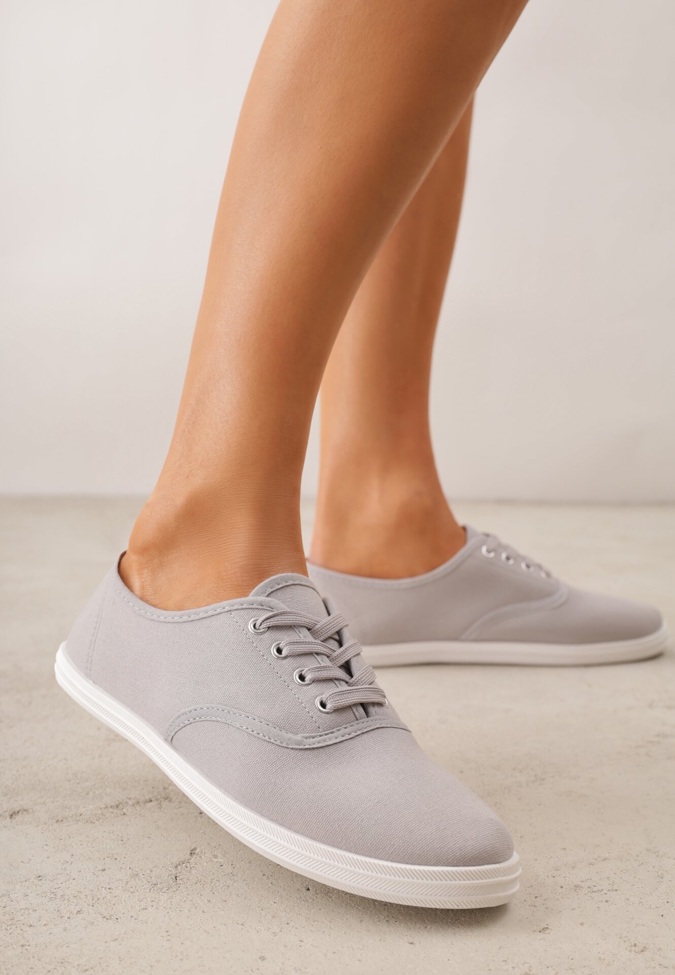 Teniși Gri cu talpă plată, cu șireturi și vârf rotund Ezoma