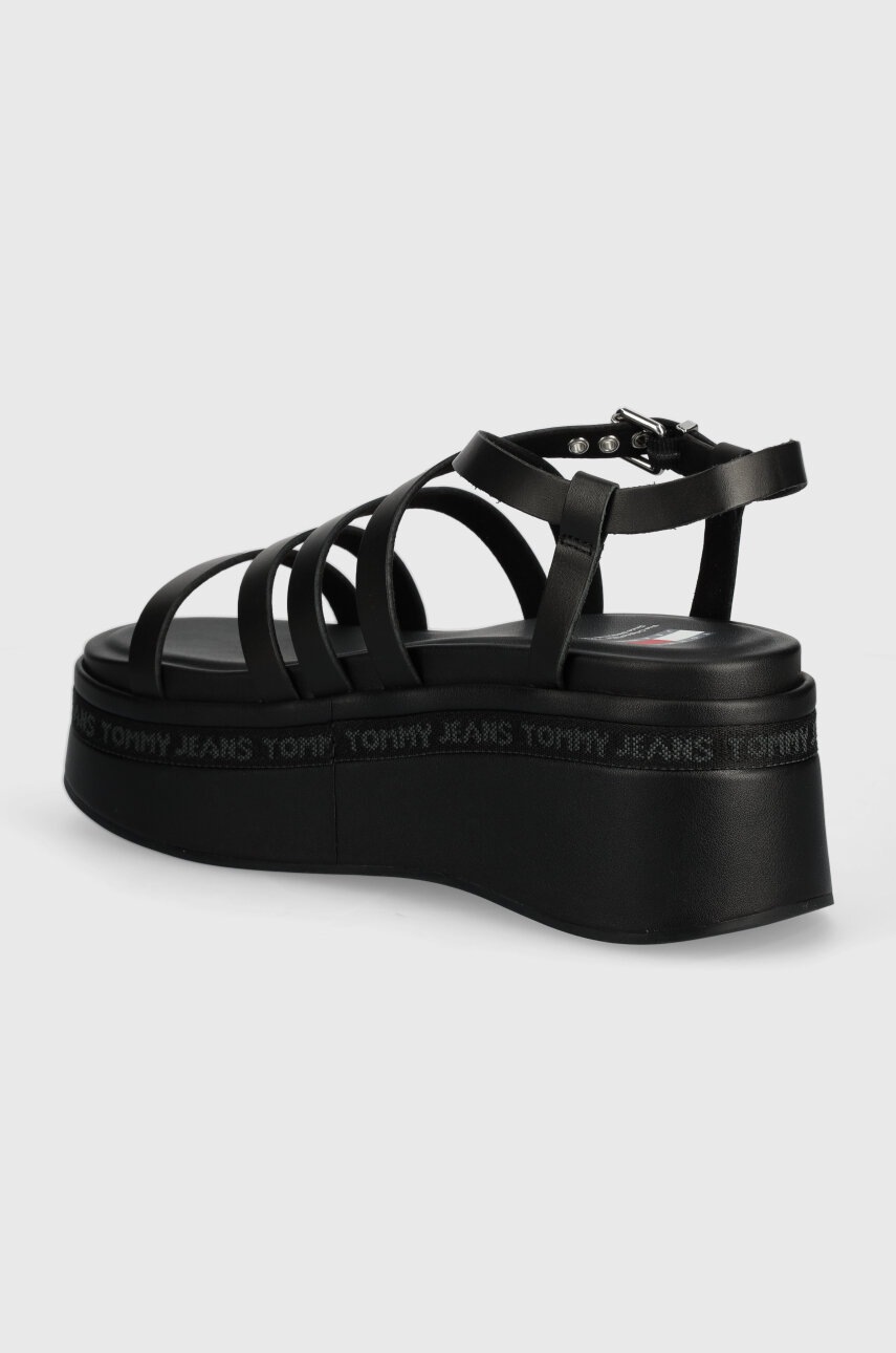 Tommy Jeans sandale de piele TJW STRAPPY WEDGE SANDAL culoarea negru, EN0EN02516