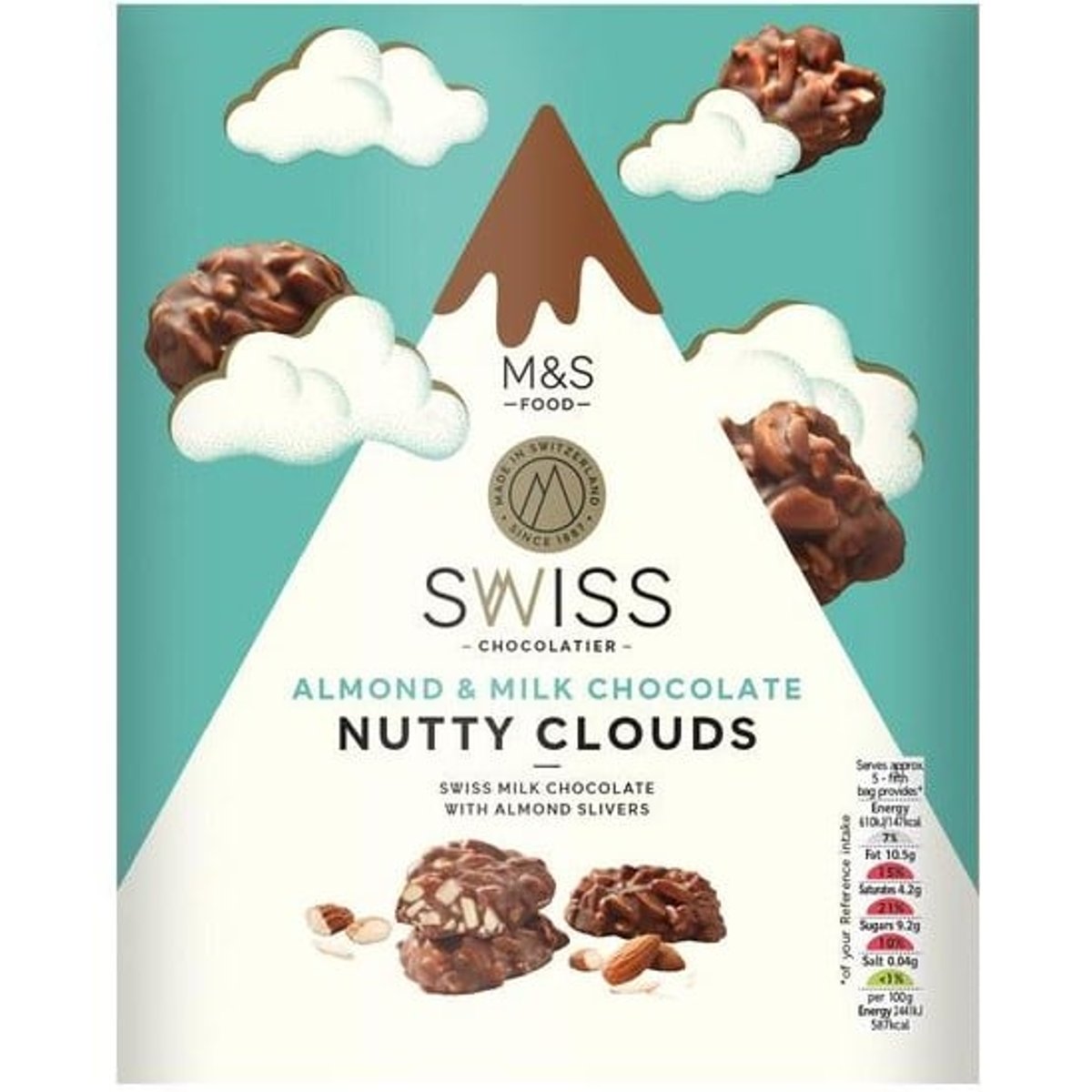 Norii noștri elvețieni de ciocolată cu lapte și migdale sunt fabricați cu ciocolată cu lapte fină și cremoasă, presărată din belșug cu felii de migdale pentru o crocantă delicios de nucată.