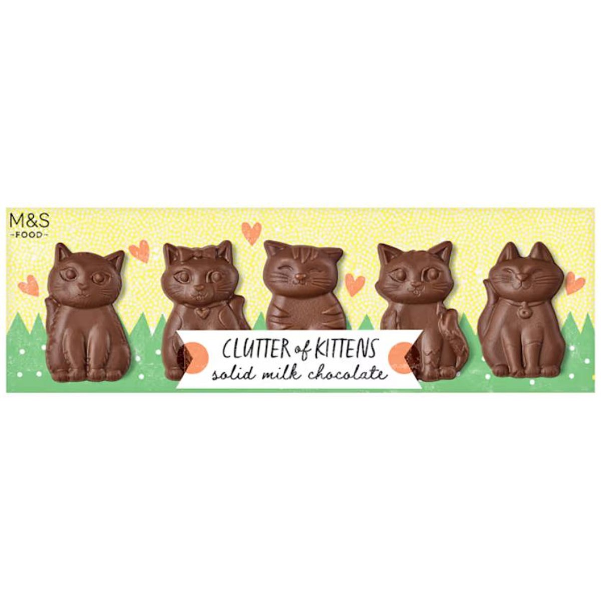 Clutter of Kittens contine cinci ciocolate solide cu lapte, cu forme adorabile, care arata la fel de dulce pe cât au gust. Toate ciocolatele Marks & Spencer provin din surse responsabile de la fermele noastre de cacao de încredere.