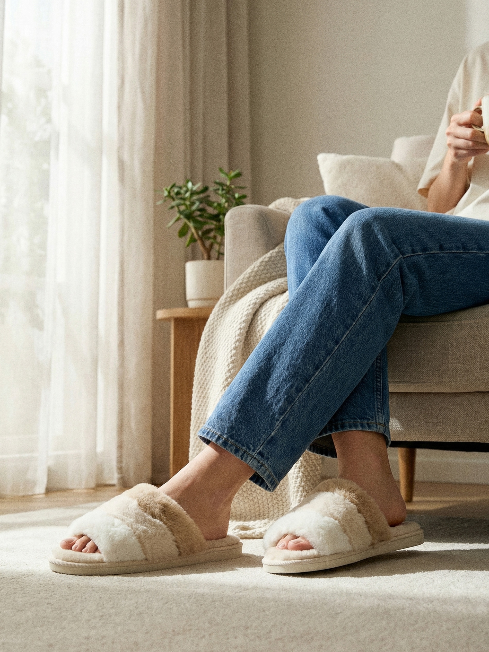 Sinsay - Papuci de casă din blană artificială - bej