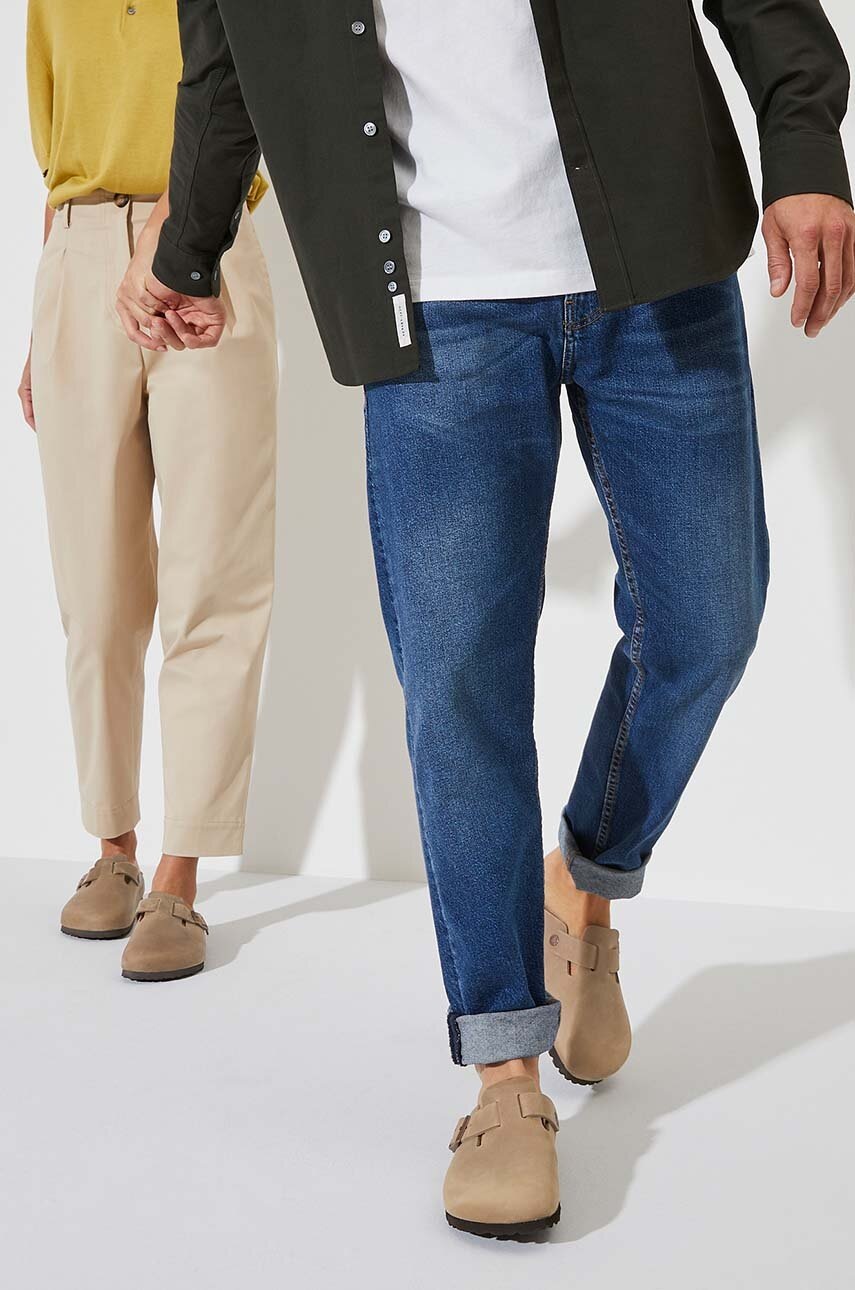 Birkenstock papuci Boston, nubuc maro, lățime îngustă, model 960813