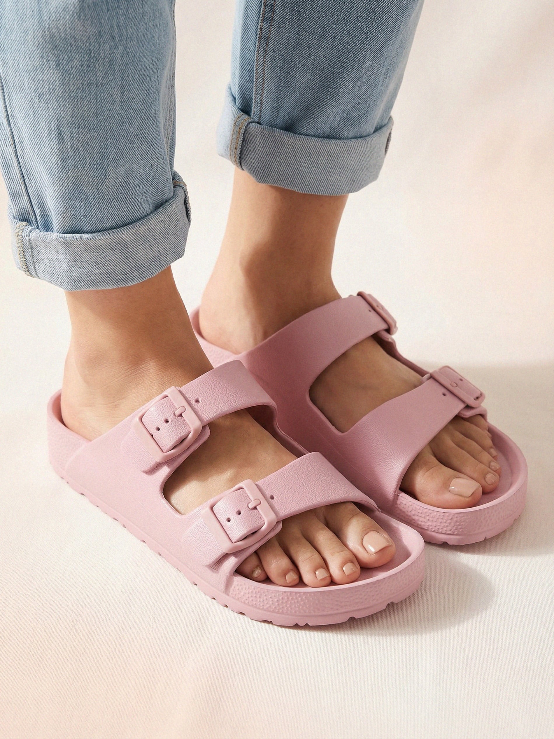 Sinsay - Papuci din spumă cu bretele reglabile - roz-trandafiriu