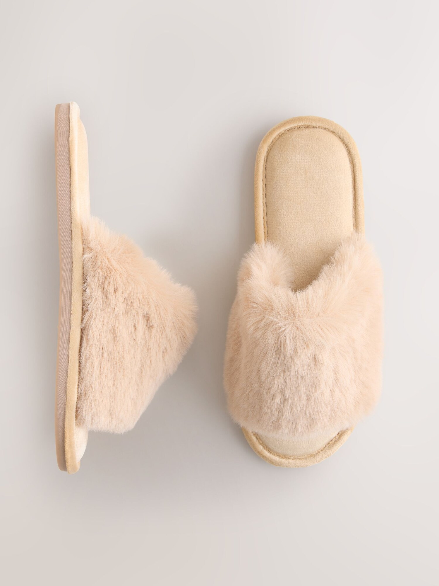 Design: Talpă căptușită, Talpă profilată; Tip de închidere: Alunecare; Material: Blană artificială; Imprimeu: Monocrom; Vârful încălțămintei: Cu vârf deschis; Detalii: Suprafață structurată; Înălțimea tocurilor: Toc plat (0-3 cm)