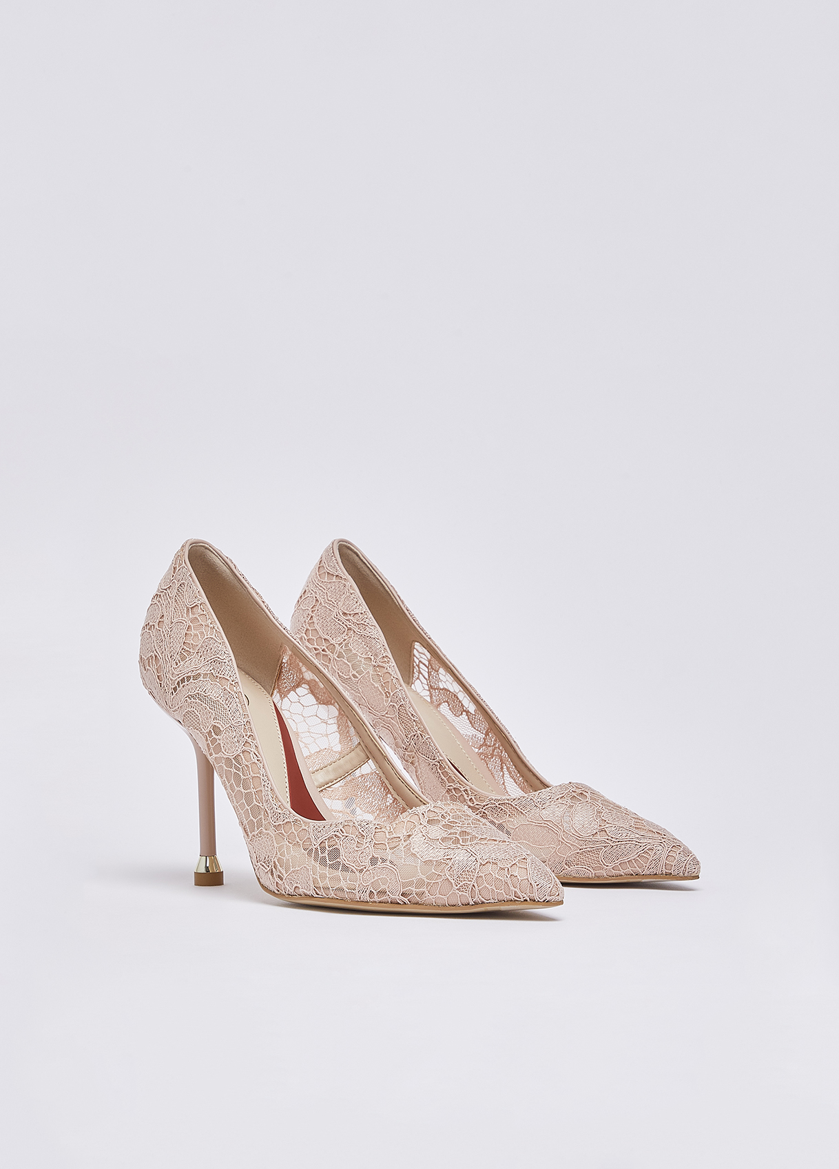 Romantic and sophisticated, these My Liu Jo Essentials nude lace pumps convey timeless elegance. The light sheer details and stiletto heel make them perfect for special events or for adding a refined touch to evening looks. Court shoes with lace upper Heart-shaped detail on the front Pointed toe The heart-print insole complements the pair, a sign of love and signature Liu Jo style Branded bi-material sole with print My Liu Jo Essential Stiletto heel with iconic metallic detailing Heel height: 9.5 cm