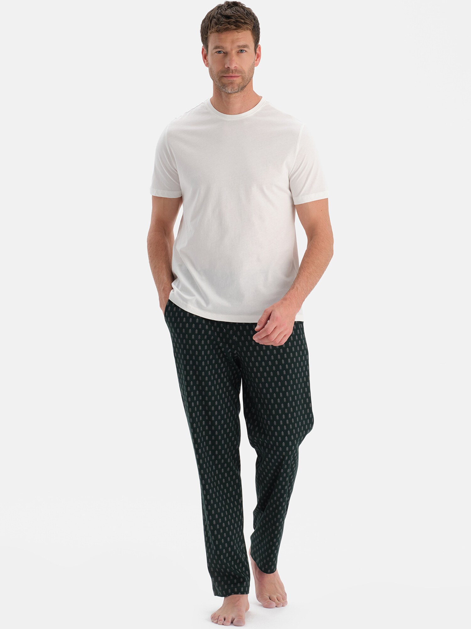 Dagi Pijama lungă gri deschis / verde pin / alb