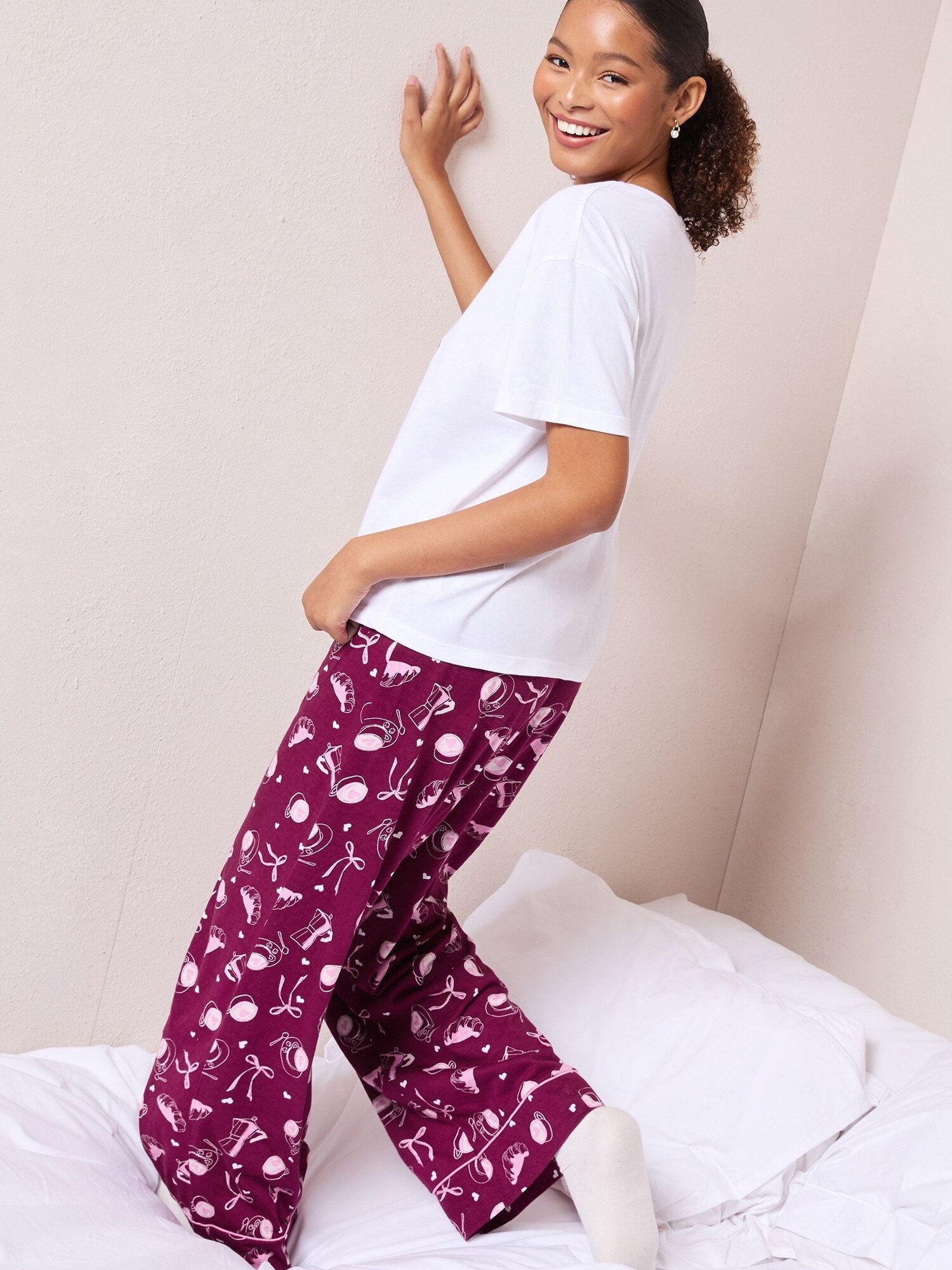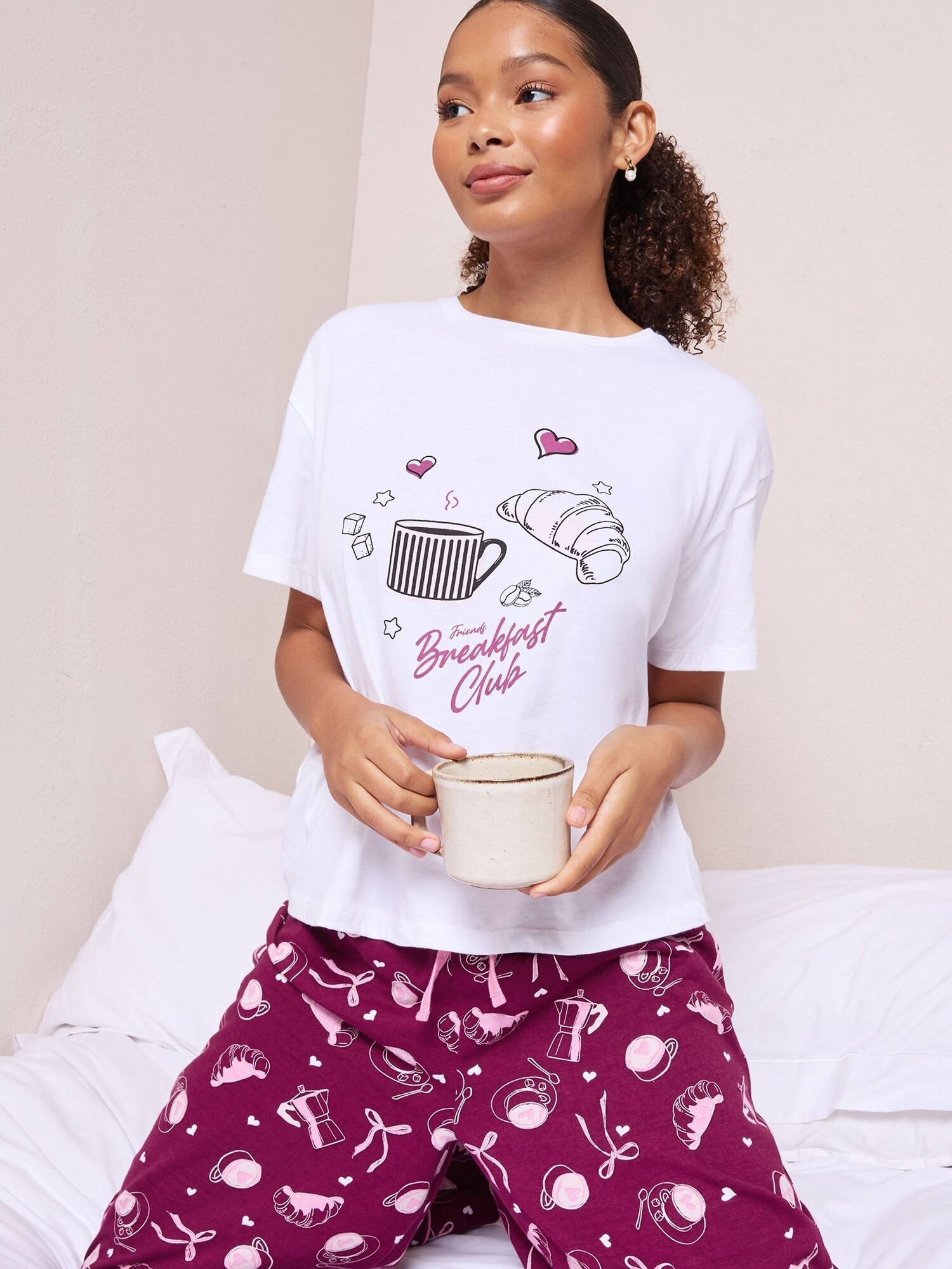 Friends Like These Pijama Breakfast Club roz / roșu burgundy / negru / alb