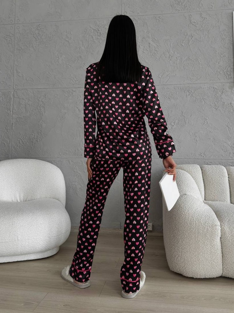 Set pijama dama din doua piese, cu nasturi – 2301408, Negru/ Roz