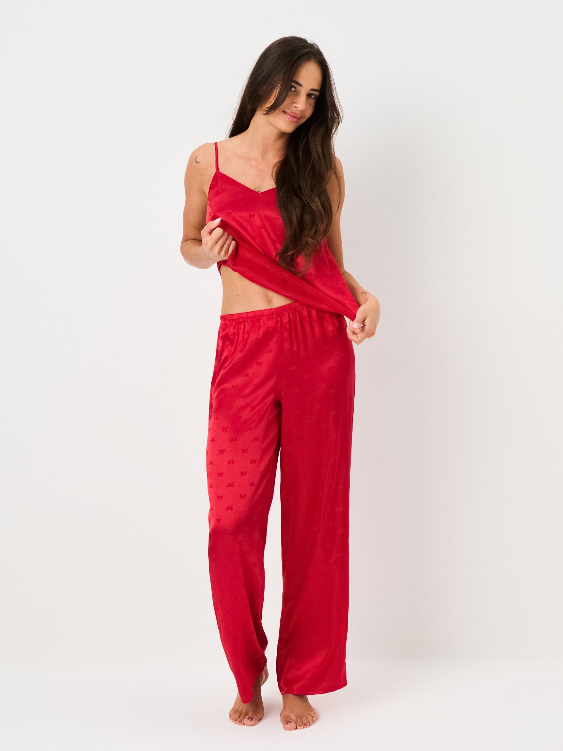 Sinsay - Pijama din două piese, cu top cu bretele subțiri - roșu