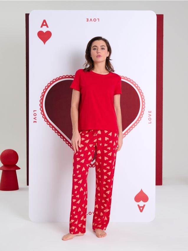 Sinsay - Pijamale din bumbac din două piese cu motiv de inimă - roșu