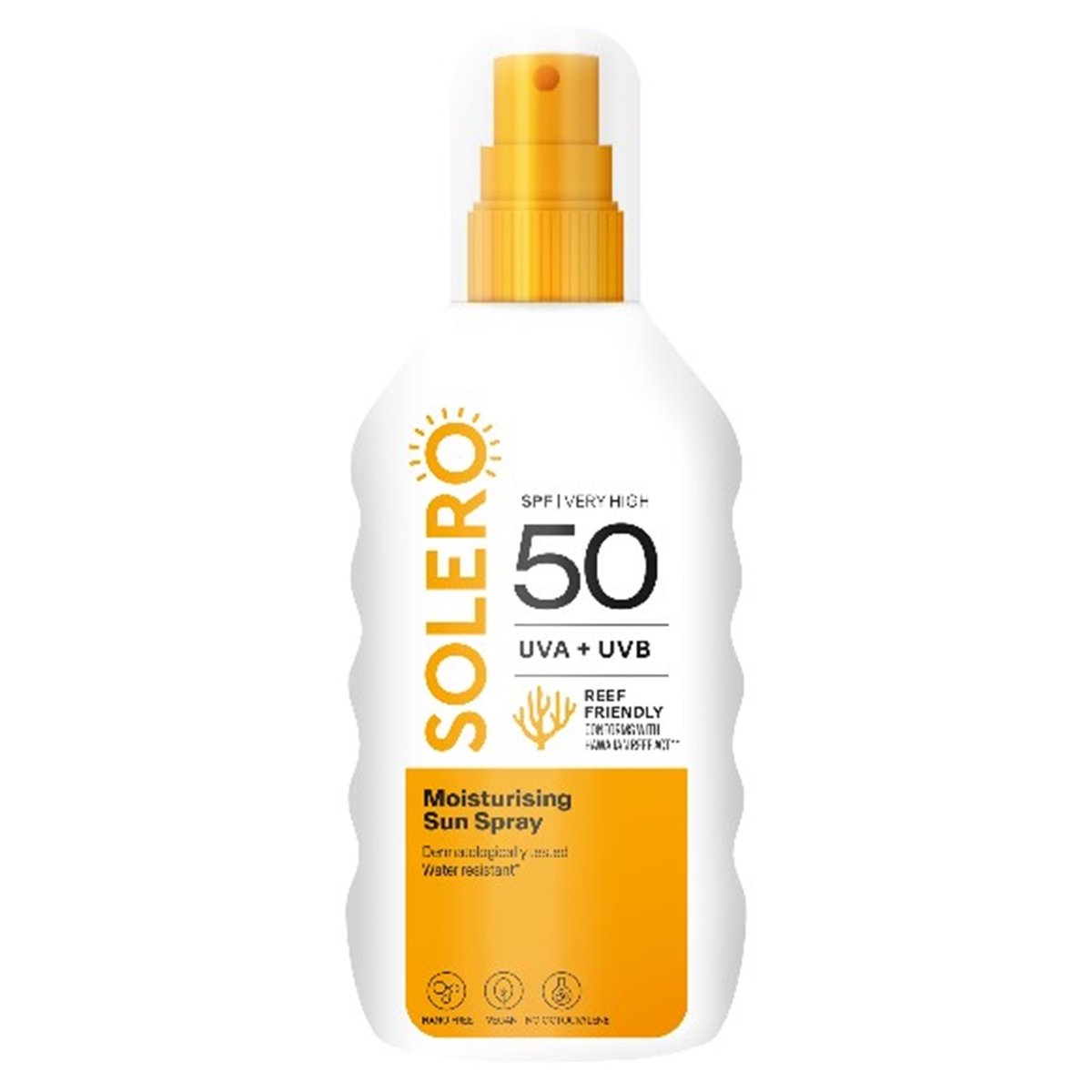 Spray solar hidratant, rezistent la apa. Mod de utilizare: Agitati bine inainte de utilizare. Aplicati cu generozitate inainte de expunerea la soare. O cantitate insuficienta va reduce nivelul de protectie in mod semnificativ. Reaplicati frecvent pentru a mentine protectia. *Dupa contactul cu apa, Solero continua sa protejeze pielea timp de 40 de minute cu cel putin 50% din SPF
