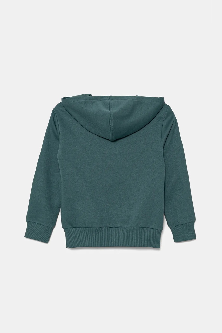 - United Colors of Benetton bluza copii culoarea verde, cu glugă, modelator