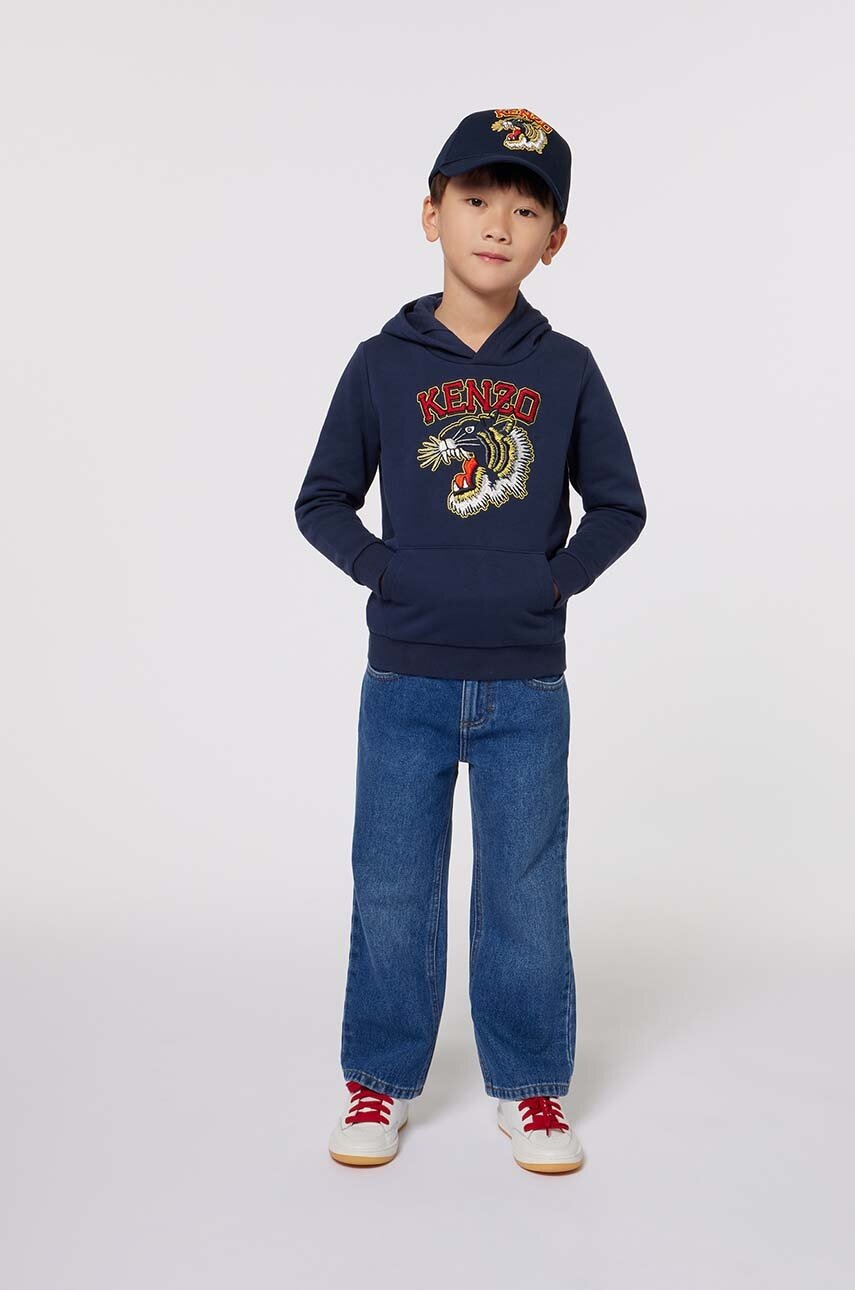 - Kenzo Kids hanorac de bumbac pentru copii culoarea albastru marin, cu glugă, cu imprimeu, K60767