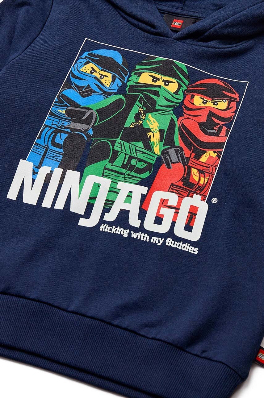 - Lego hanorac de bumbac pentru copii LWSCOUT 707 culoarea albastru marin, cu glugă, cu imprimeu, 12011288