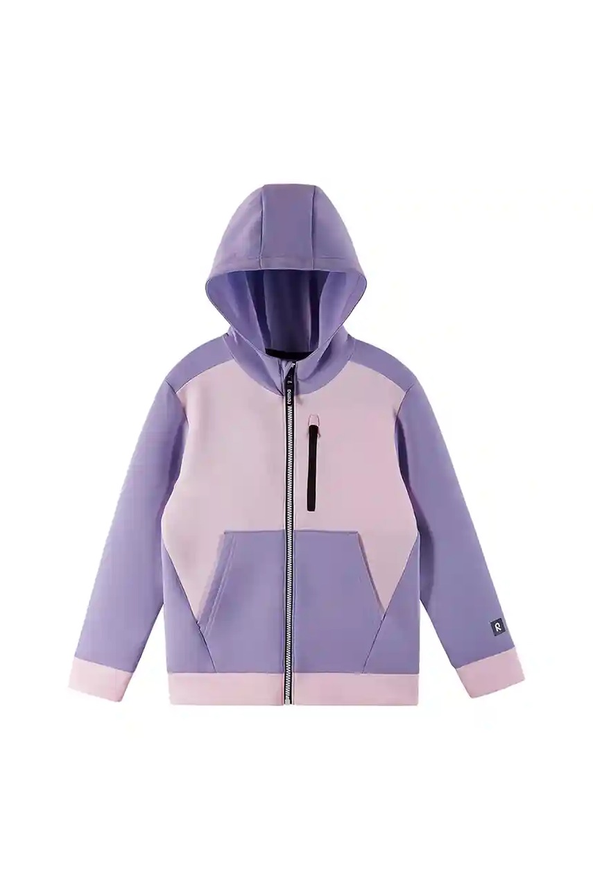 Bluză pentru copii cu glugă din colecția Reima. Model care se încheie cu fermoar confecționat din material flexibil de grosime medie.