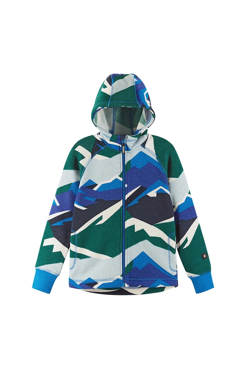 Bluză pentru copii cu gluga din colecția Reima confecționat din material de lână. Model realizat din material moale si placut la atingere.