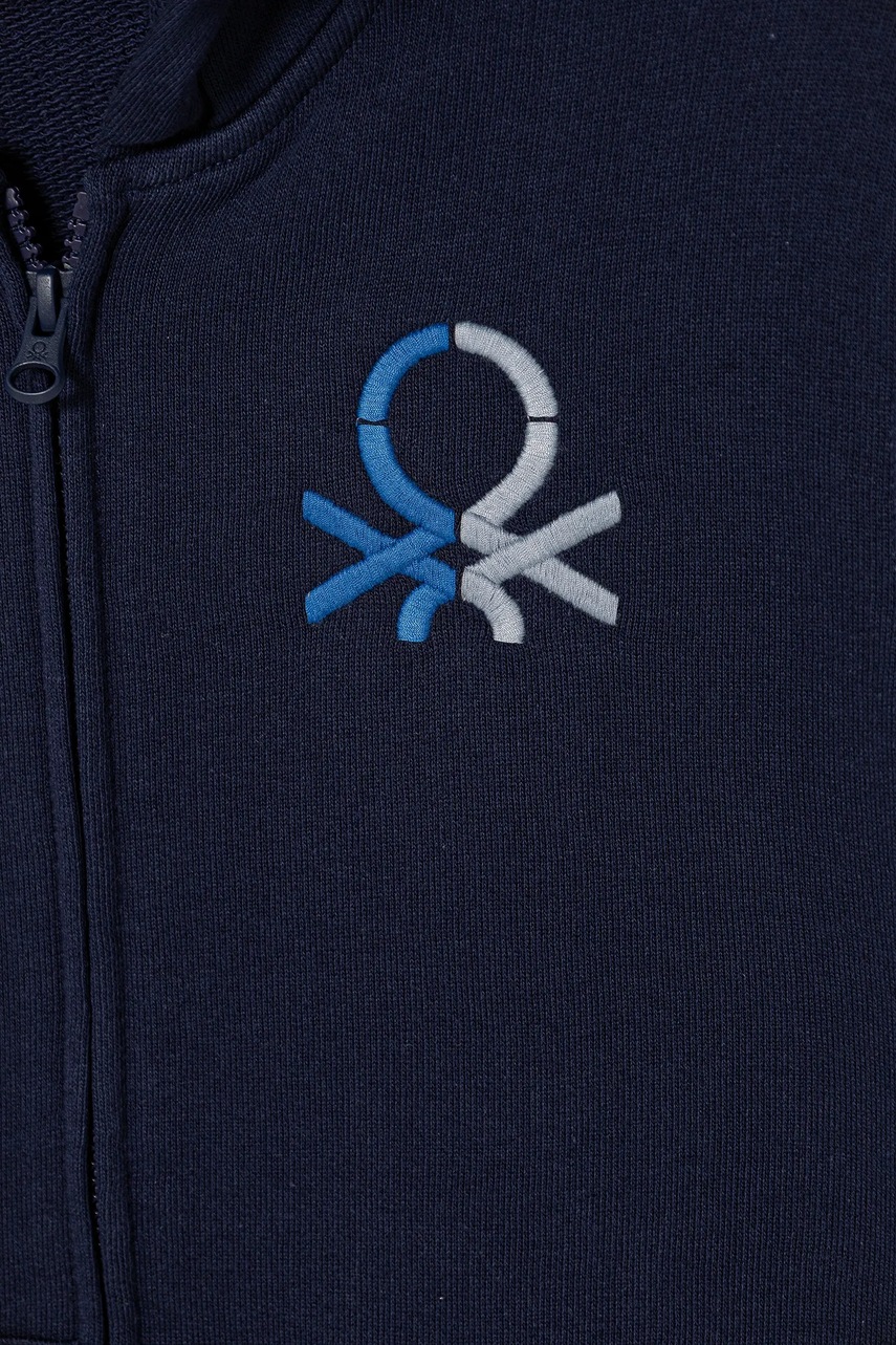 United Colors of Benetton hanorac de bumbac pentru copii culoarea bleumarin, cu glugă, cu imprimeu, 3J68C505C