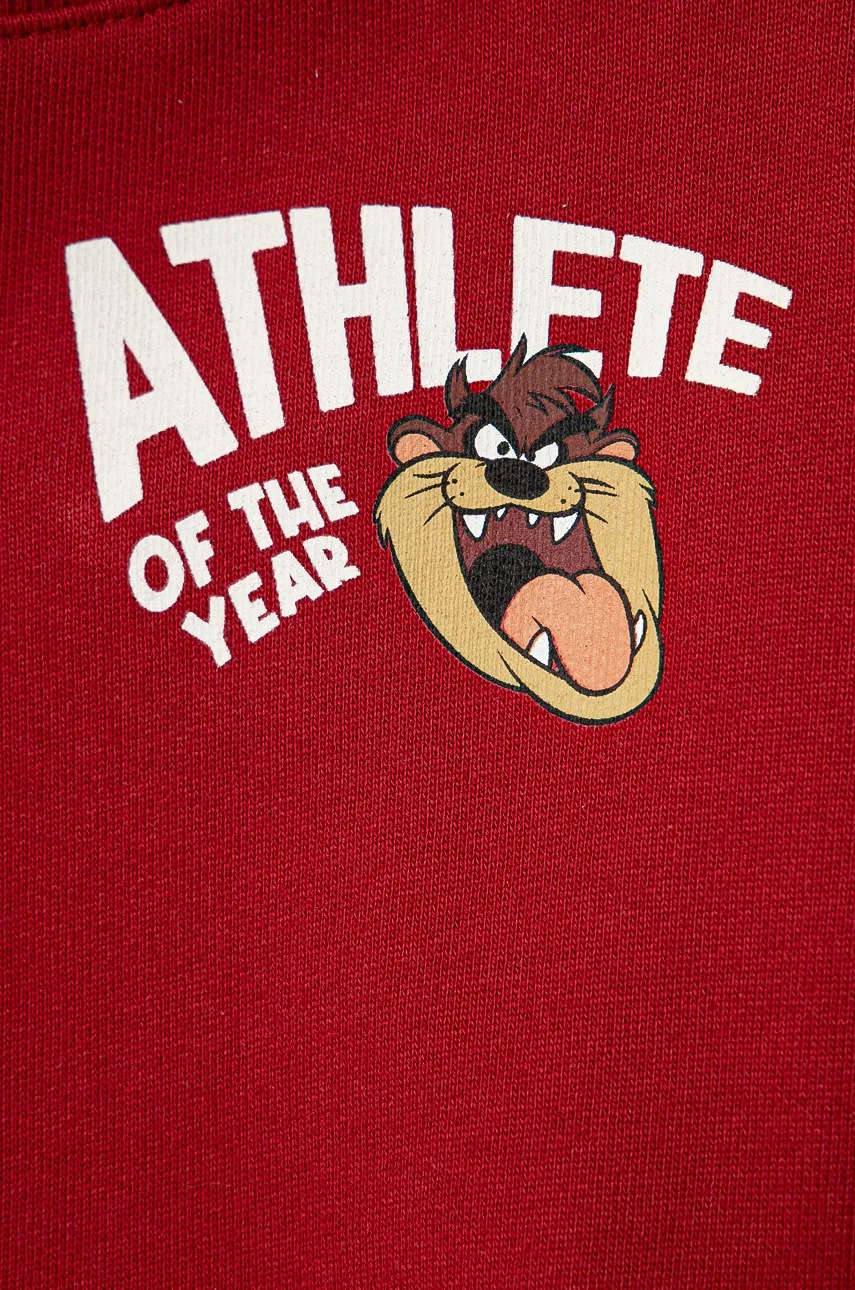 United Colors of Benetton hanorac de bumbac pentru copii x Looney Tunes culoarea bordo, cu imprimeu, 3J68G10GX