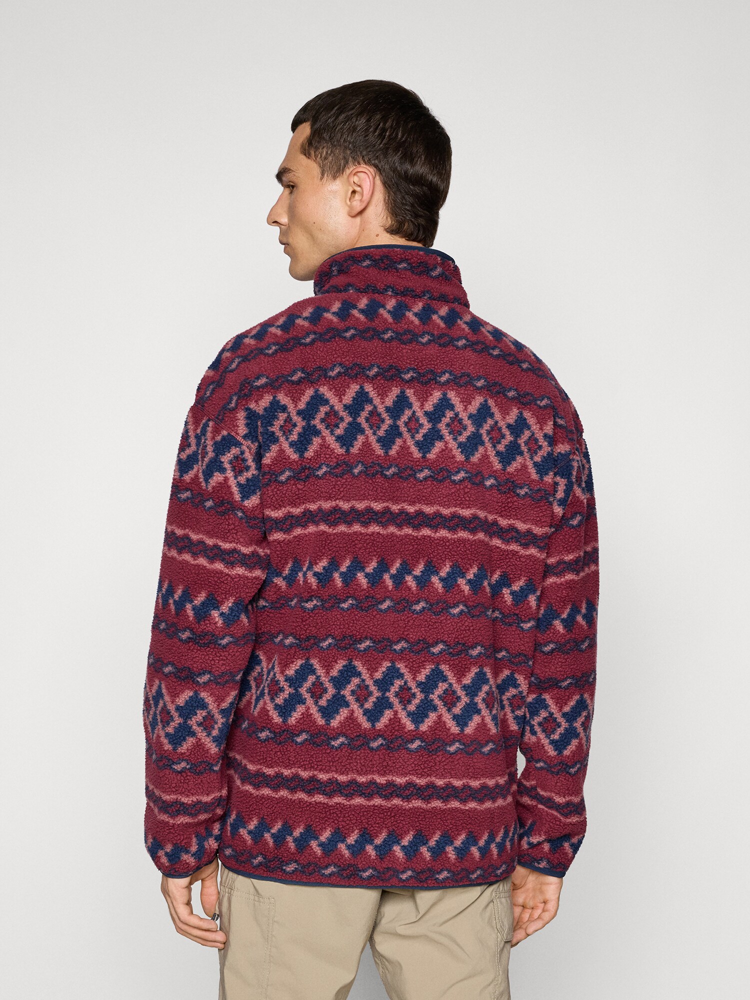 Design: Cu tiv, Tiv drept; Tip de închidere: Capsă; Material: Teddy; Decolteu: Pulover troyer; Imprimeu: Model etnic; Detalii: Imprimat în totalitate, Petic cu logo, Material moale; Croi: Croi normal; Lungime mâneci: Mâncecă lungă