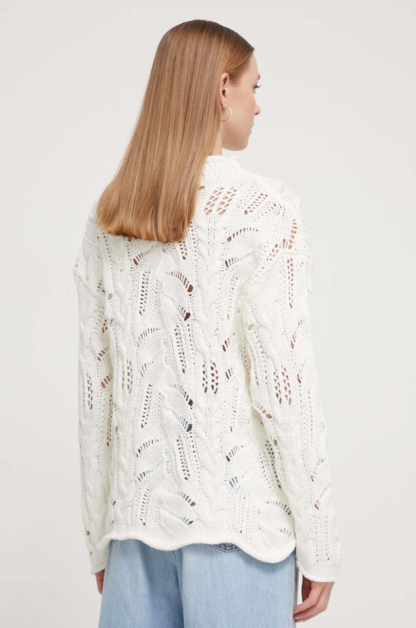 Desigual pulover de bumbac culoarea alb, cu turtleneck