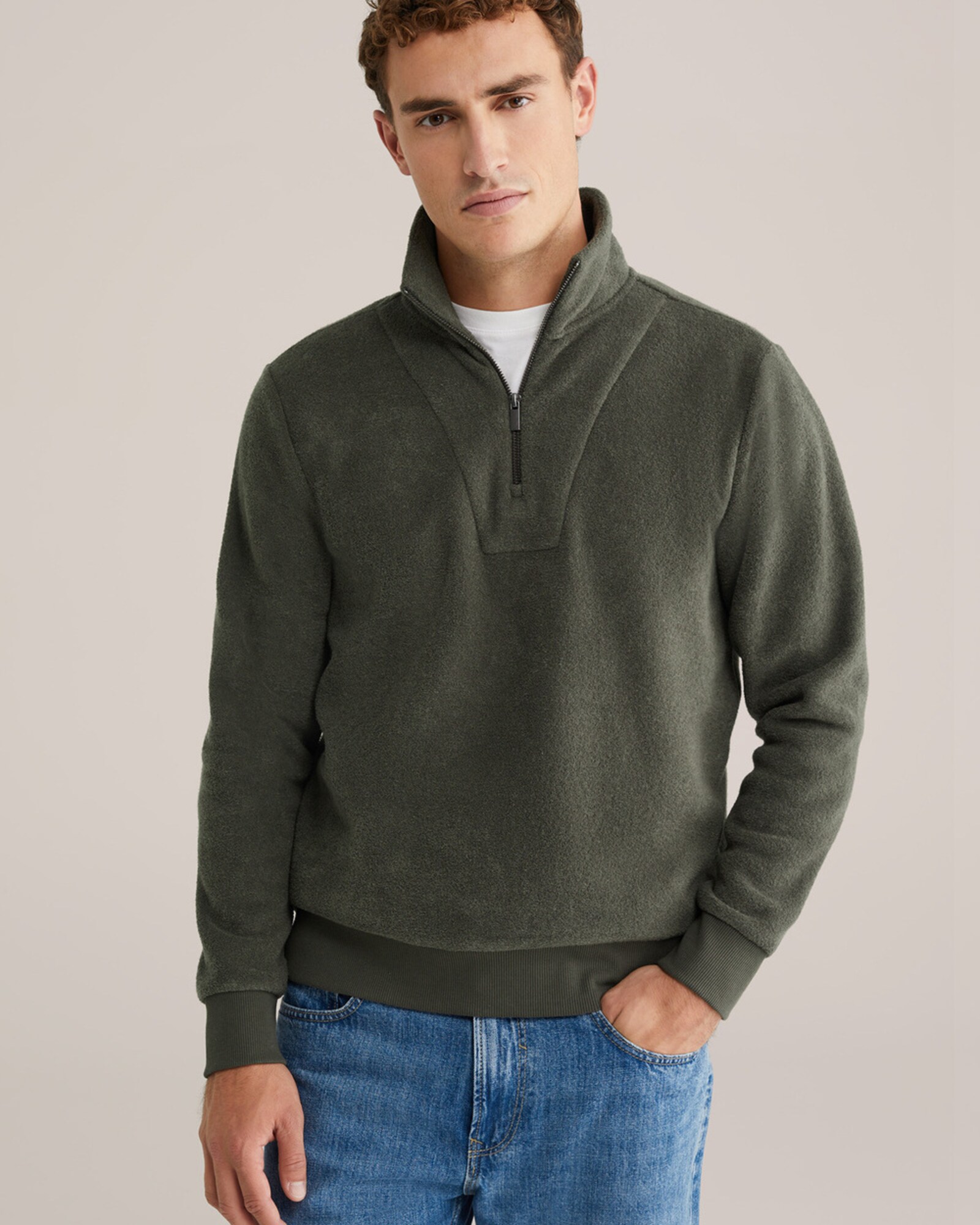 Design: Manșete cu striații, Semifermoar; Tip de închidere: Fermoar; Decolteu: Pulover troyer; Imprimeu: Monocrom; Detalii: Material moale; Croi: Croi normal; Lungime mâneci: Mâncecă lungă